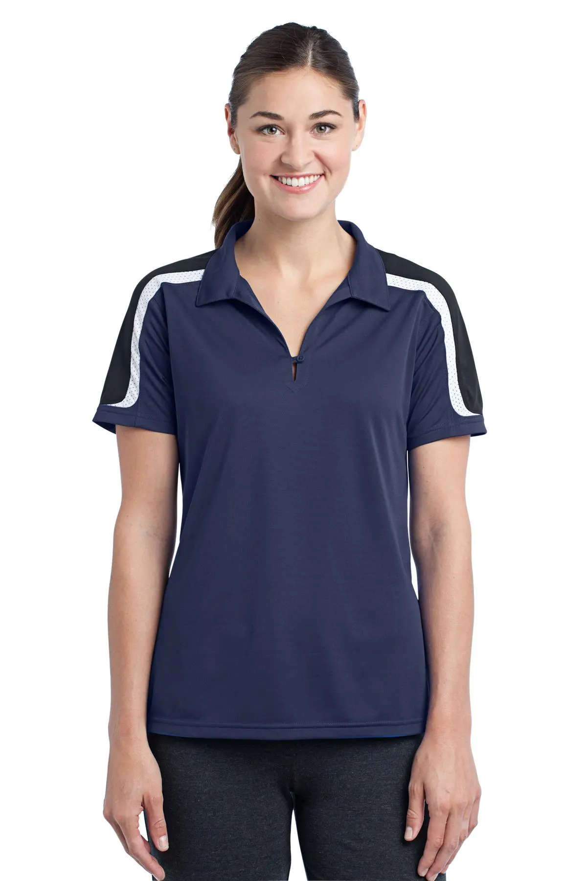 The Tricolor Shoulder Polo offers bold, three-color accents on shoulders for a modern athletic statement. Lightweight, 3.8-ounce polyester tricot provides breathable comfort and moisture management during high-intensity activities. Mesh insets at shoulders and sleeves enhance ventilation in key heat zones. Self-fabric collar and taped neck add professional styling, while the 1-button placket allows adjustable fit. Set-in open hem sleeves provide unrestricted movement, making this polo ideal for team sports, coaching, and outdoor events.