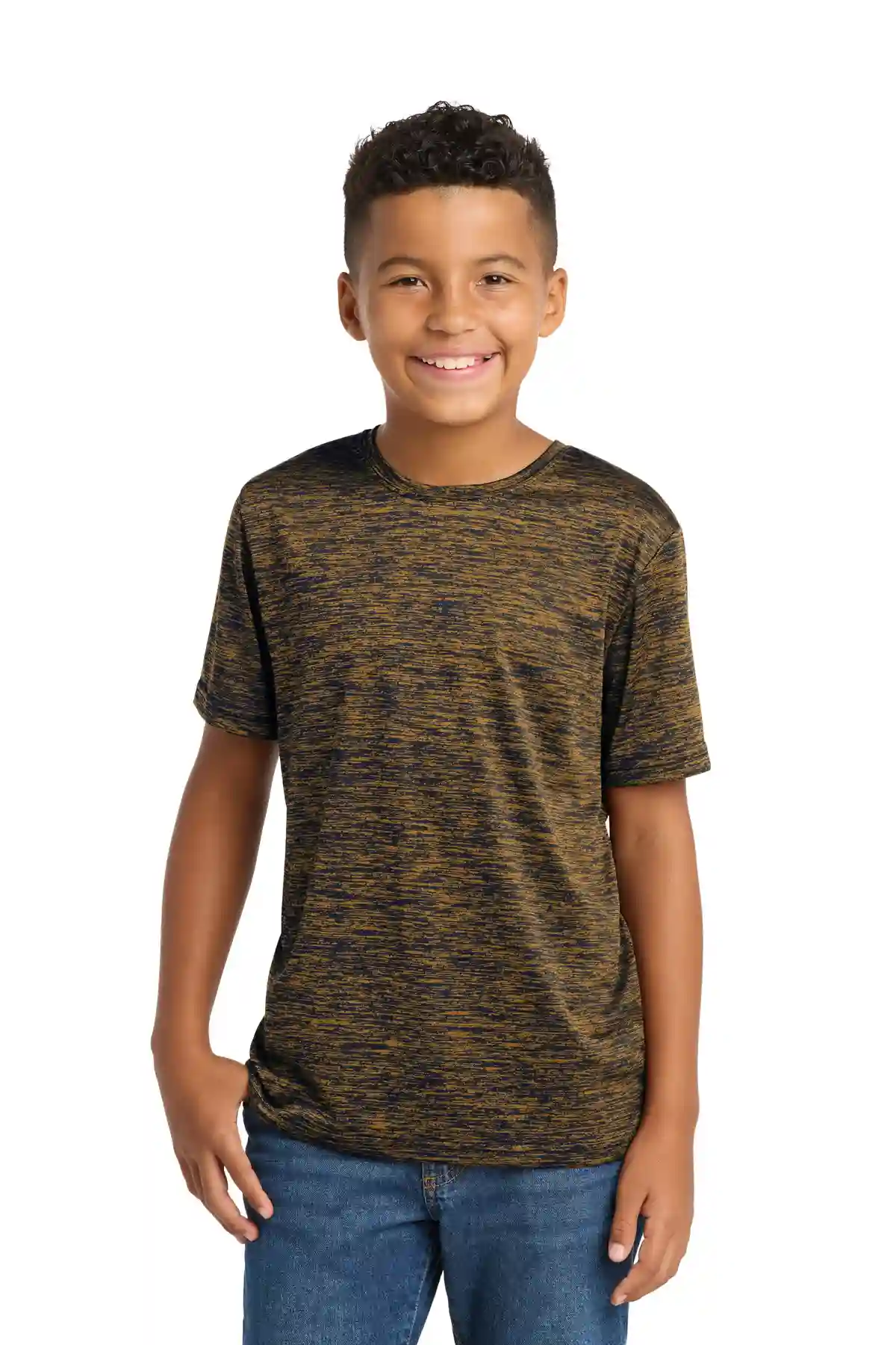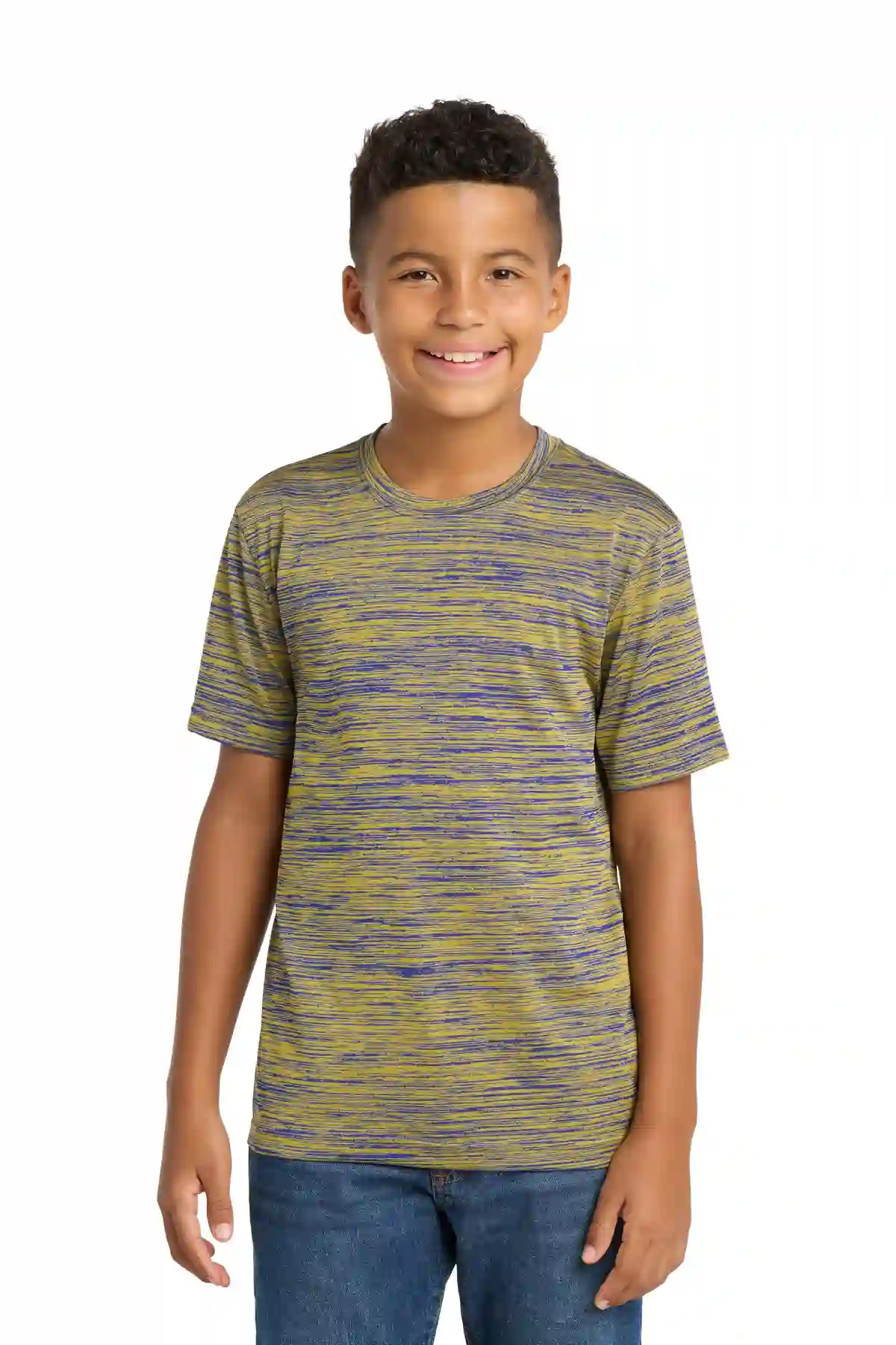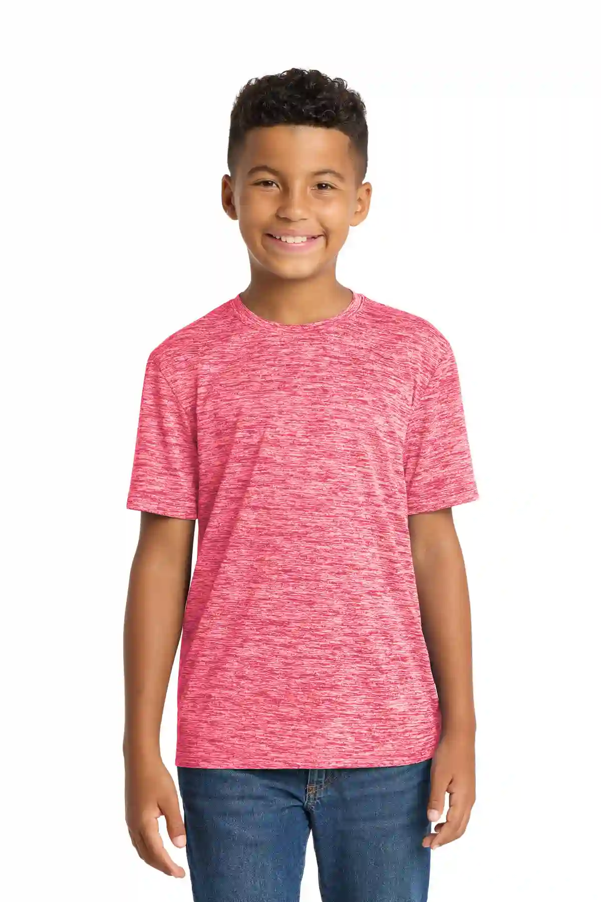 The Youth PosiCharge Electric Heather Tee energizes performance with allover heather patterning and PosiCharge technology to preserve vibrant colors. The soft, 4.1-ounce, 100% polyester jersey is lightweight and moisture-wicking, ideal for training, games, and casual wear. Its set-in sleeves maintain a comfortable fit for active youth.