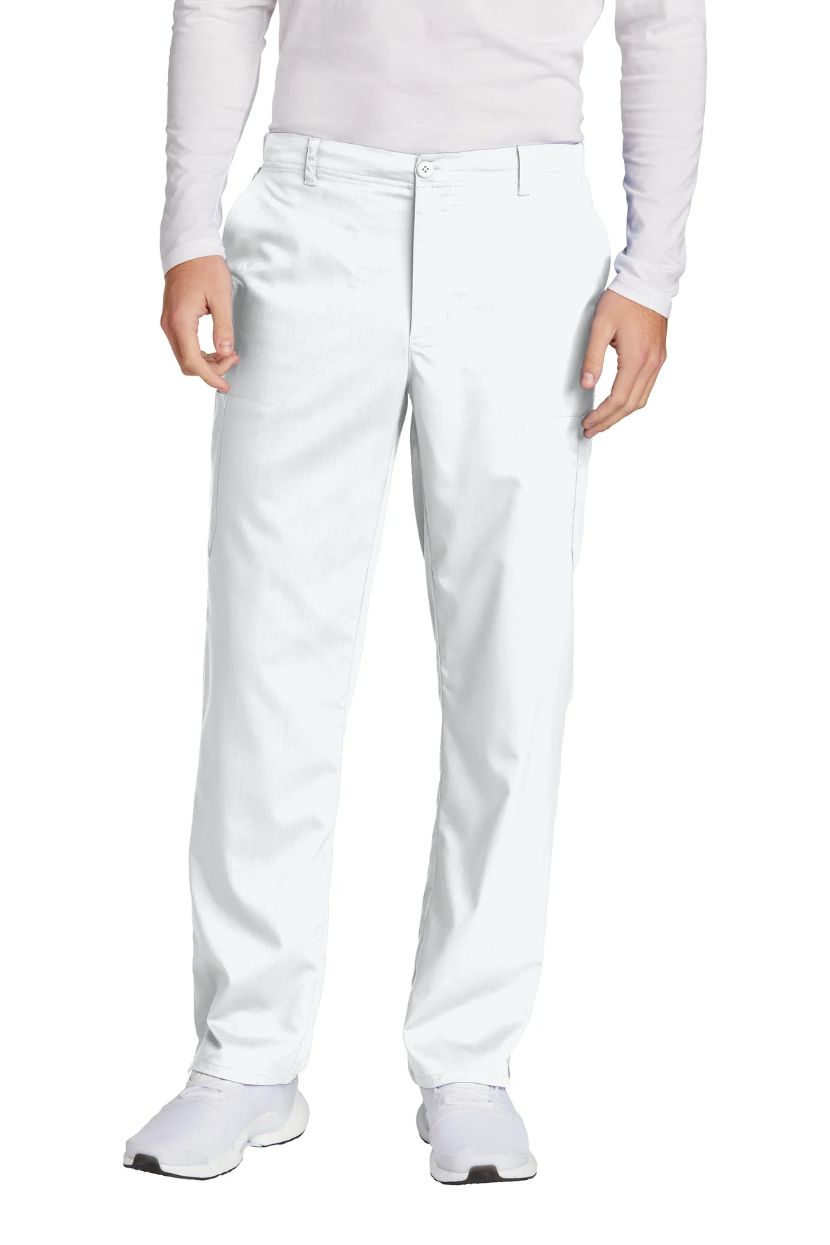 This cargo pant is engineered for professionals who require structure, flexibility, and organized storage in demanding work environments. The 78/20/2 poly/rayon/spandex blend delivers advanced stretch with shape retention, allowing full mobility without fabric fatigue. Unlike basic drawstring scrub pants, this design incorporates a flat-front waistband with belt loops, giving it a more structured, tailored appearance. A full drawstring combined with elastic back ensures adjustable comfort while maintaining a clean front profile. The button closure with zipper fly enhances security and elevates the professional finish. Multiple storage zones—including front slash pockets, cargo pockets with interior compartment, and a back pocket—support daily tools and essentials. Side vents improve stride extension and airflow. The straight-leg cut and 31-inch inseam maintain a modern, streamlined silhouette.