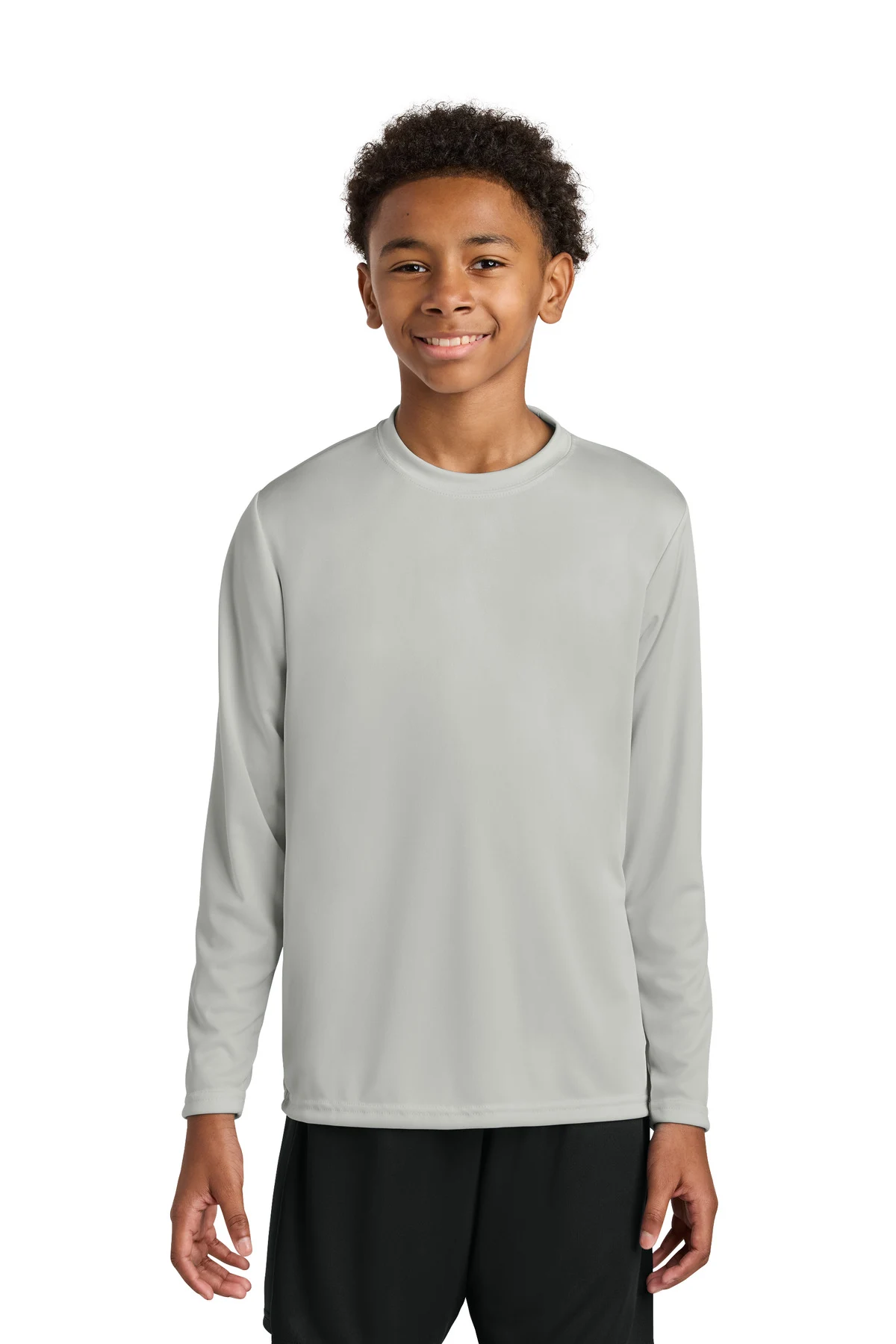 Ideal for youth athletes, this long sleeve tee keeps young players comfortable and dry during practice, games, or training sessions. The 100% recycled polyester interlock fabric wicks moisture efficiently while offering a soft, breathable feel for all-day performance.