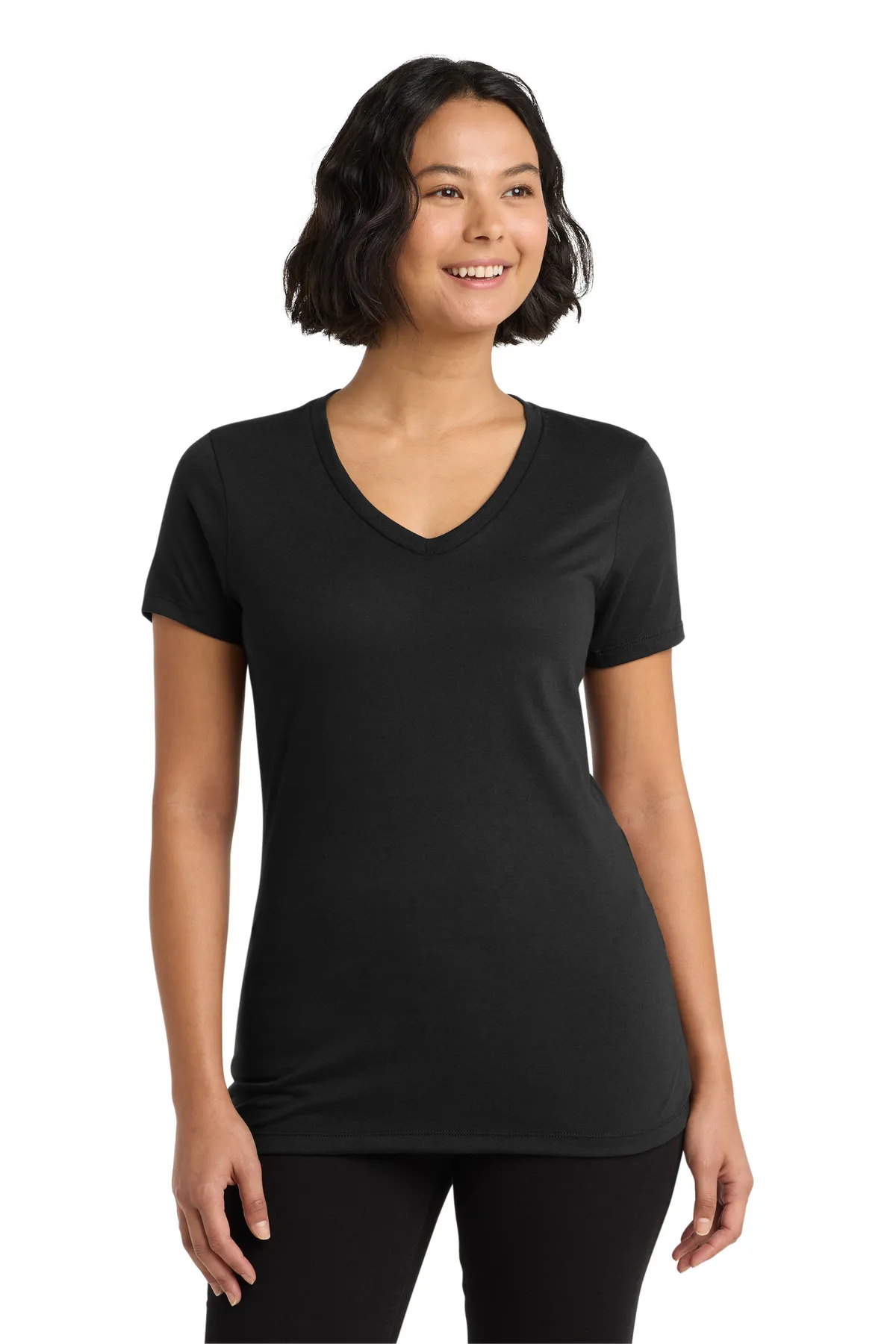 Neck: 1x1 rib knit V-neck for comfort