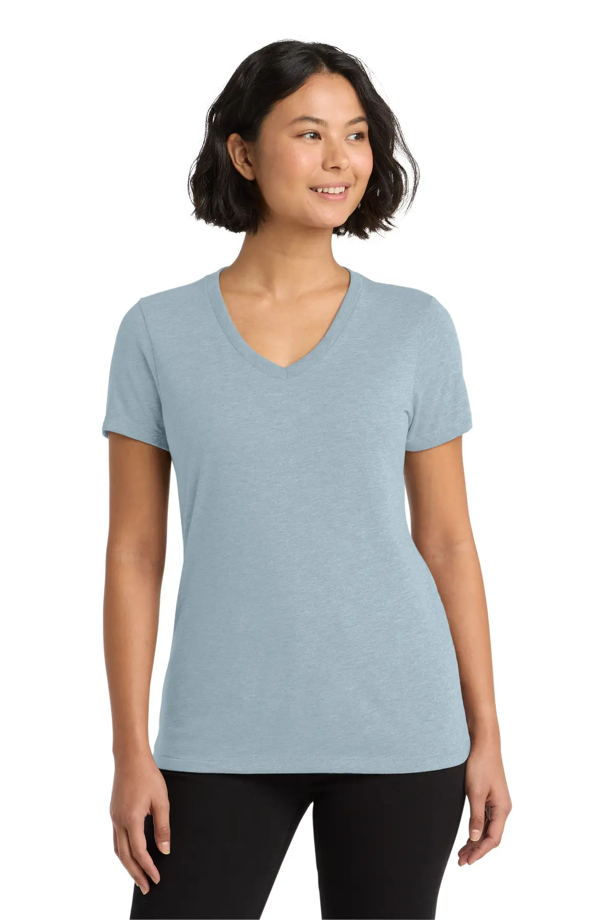 Step into comfort with purpose in this ultra-soft women's V-neck tee. Crafted from a 4.2-ounce tri-blend of 50% recycled polyester, 25% organic ring-spun cotton, and 25% modal, this sustainable top repurposes the equivalent of up to six recycled plastic water bottles. Its relaxed fit and classic V-neck make it versatile for everyday wear, casual outings, or layering in any season.