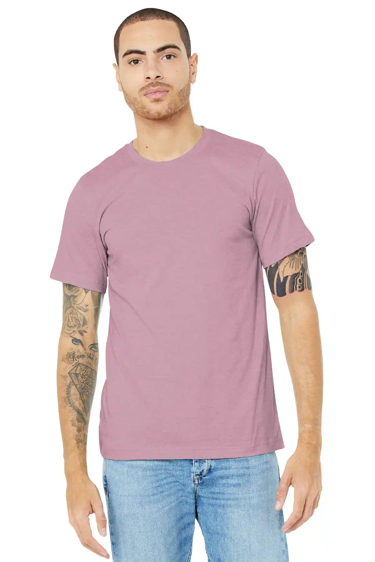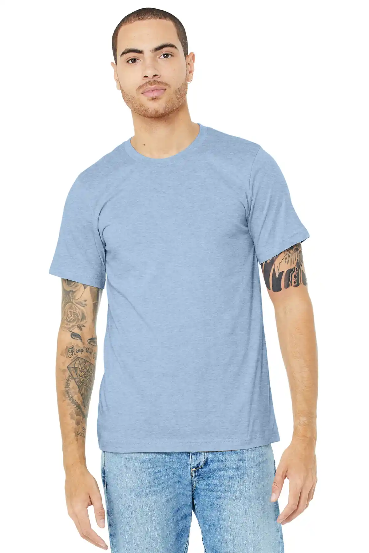 This soft, durable tee is designed for everyday comfort with a modern unisex fit that works for all occasions. Crafted from high-quality Airlume combed and ring-spun cotton blended with polyester, it offers a smooth, lightweight feel that holds up wash after wash. The side-seamed construction and shoulder taping ensure a clean, structured silhouette, while the tear-away label adds comfort and customization options. Available in a range of heather, prism, and solid CVC blends, this tee pairs effortlessly with jeans, shorts, or layered under jackets for a versatile wardrobe staple.