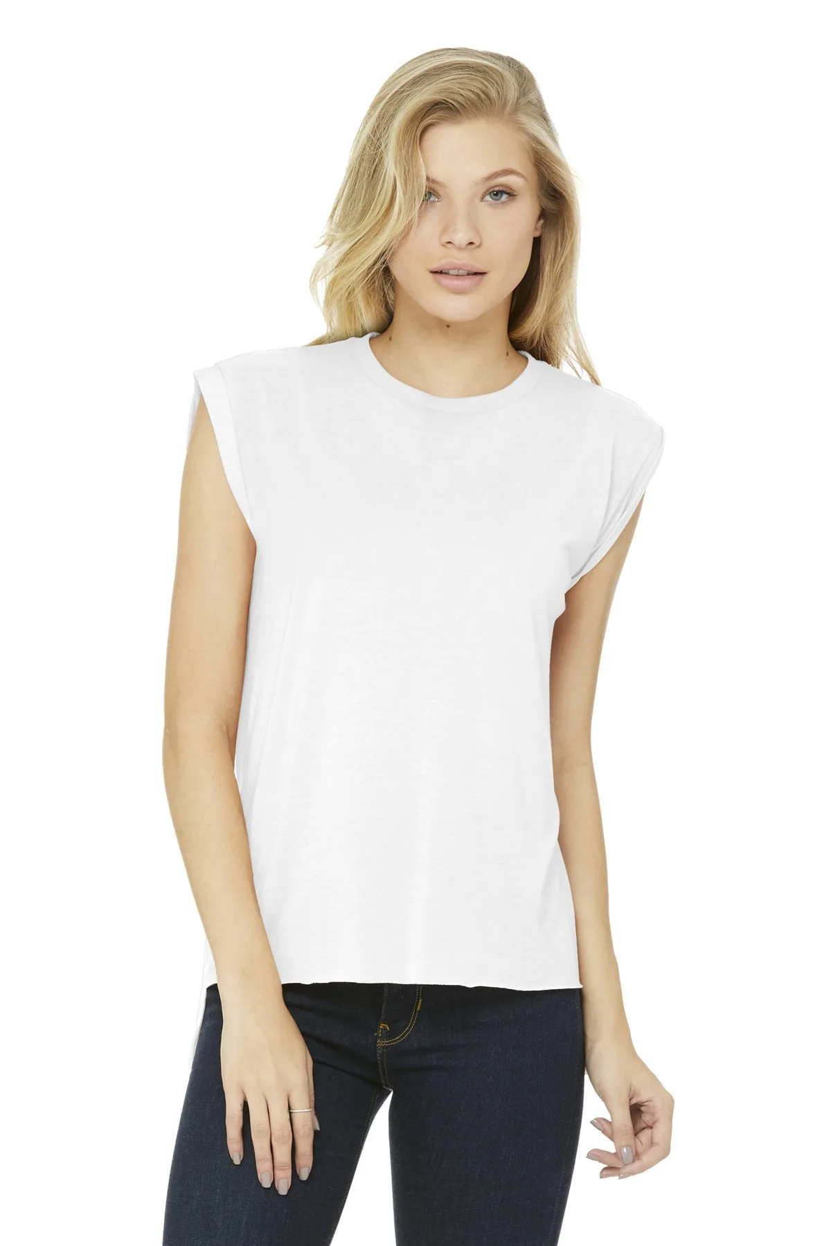 Relaxed drape and lightweight softness come together in the BELLA+CANVAS Women’s Flowy Muscle Tee With Rolled Cuffs BC8804. The smooth poly/viscose blend delivers breathable comfort, while the muscle-tee silhouette offers an easy, flattering shape. Rolled cuffs add subtle detail, and the high-low raw edge hem creates a modern finish that works well on its own or layered.