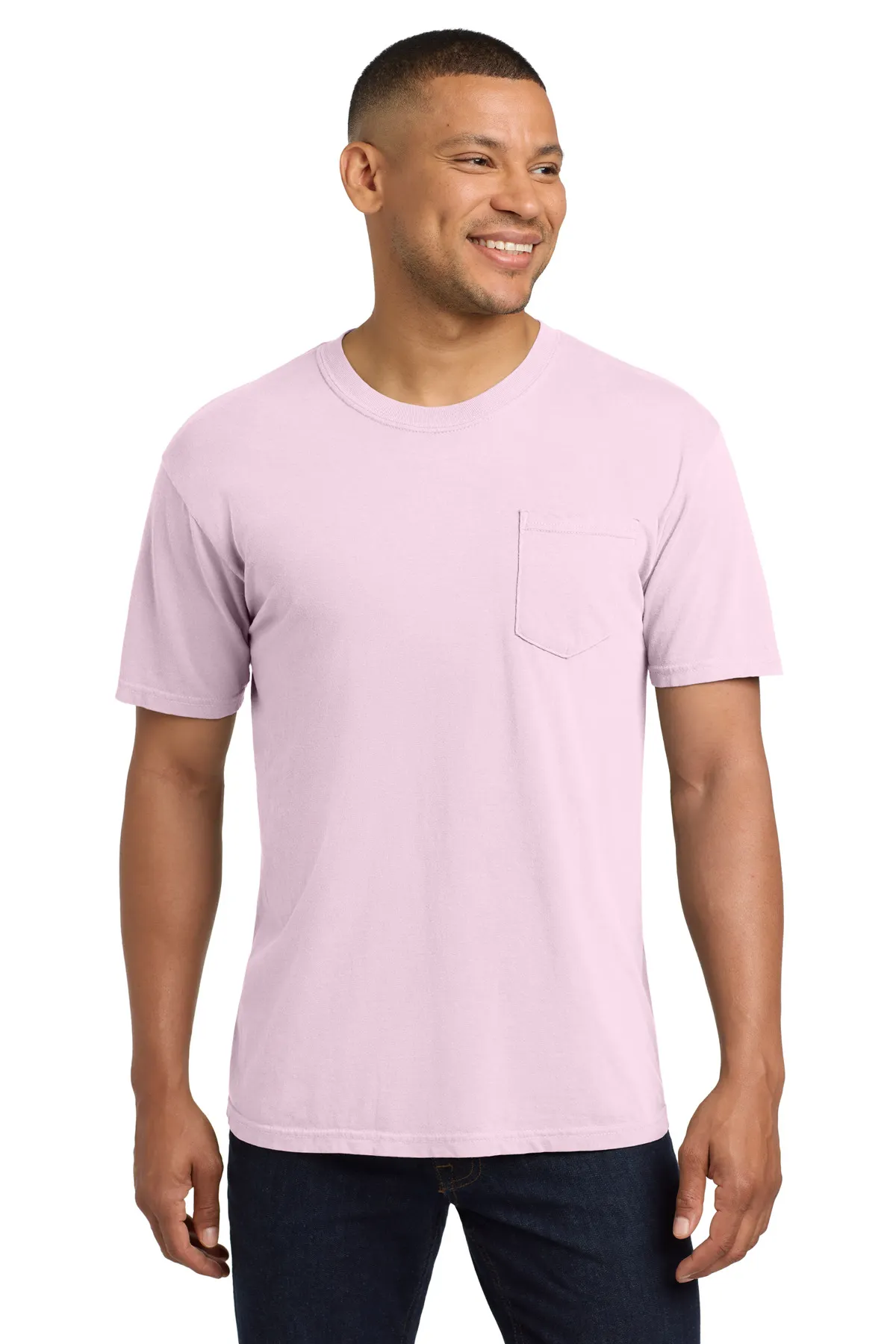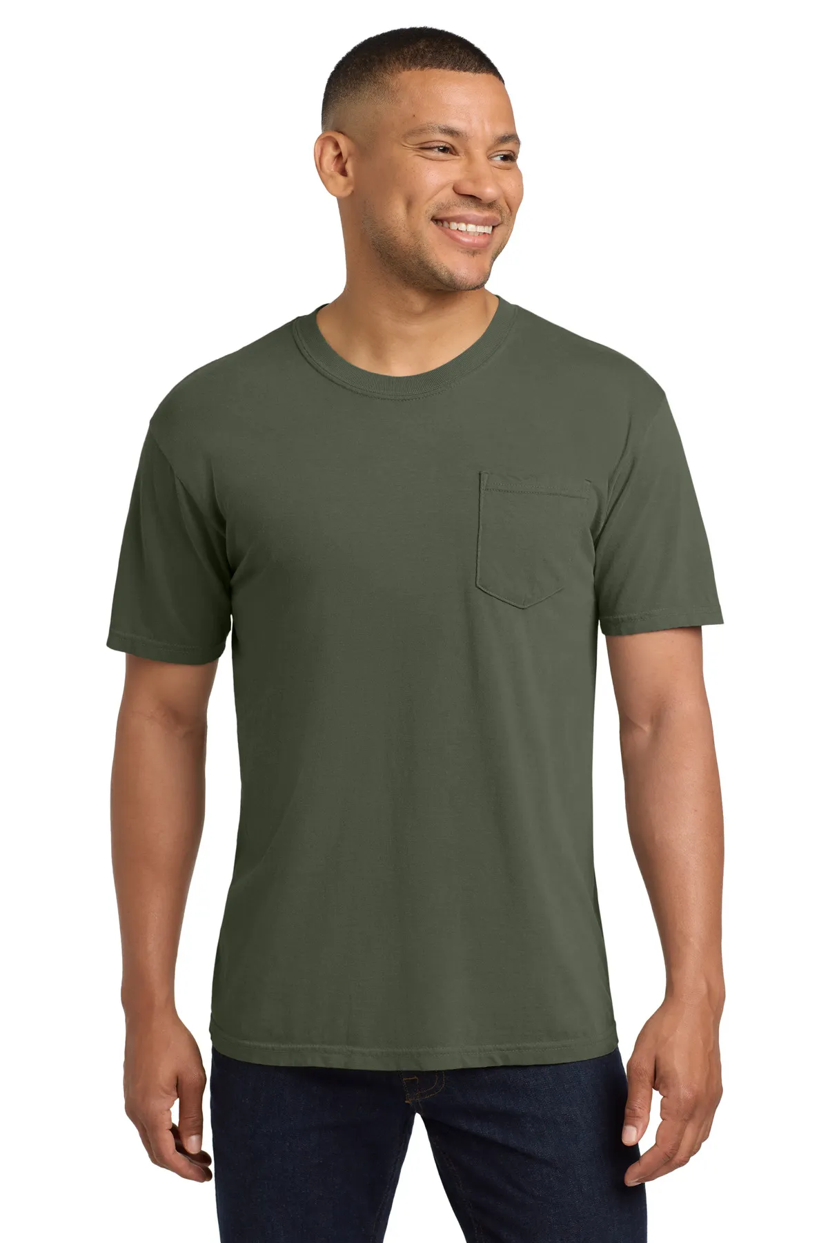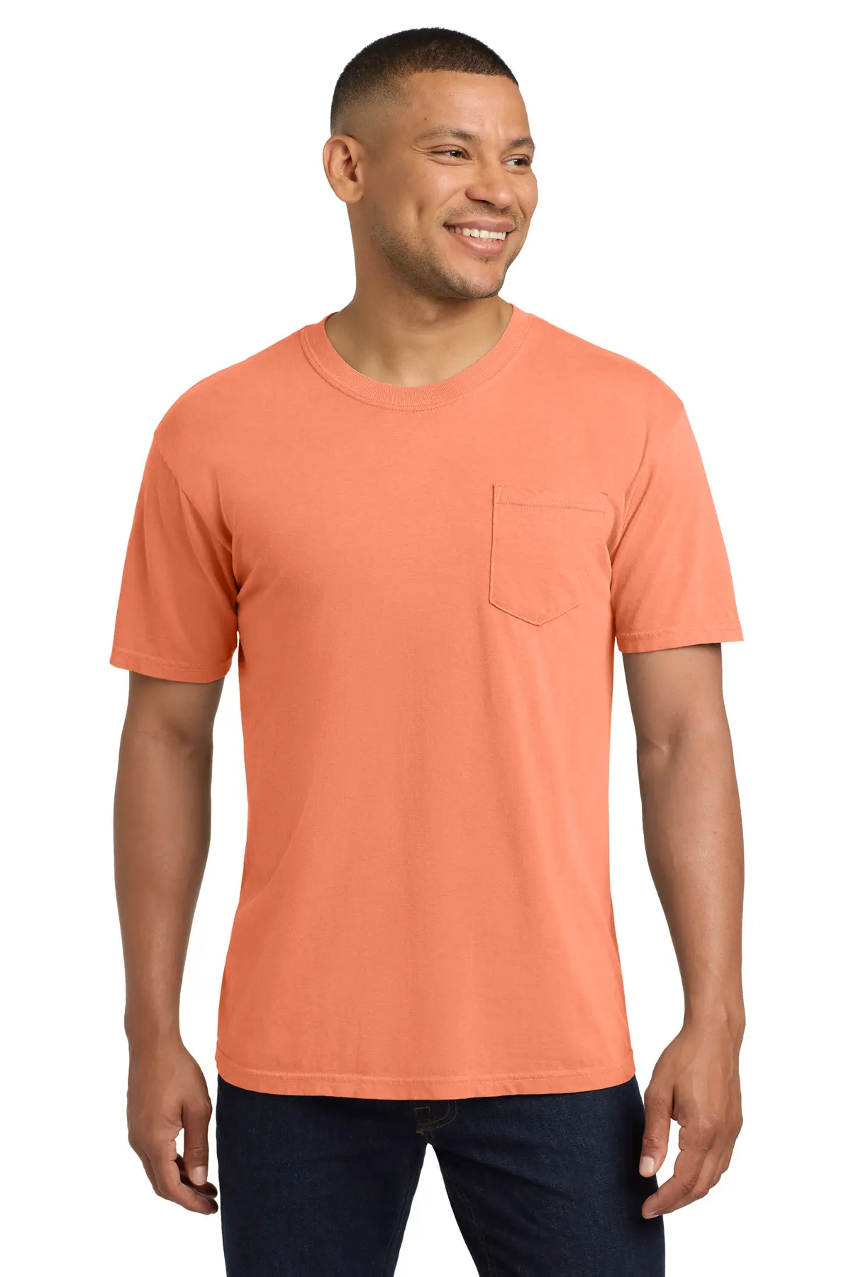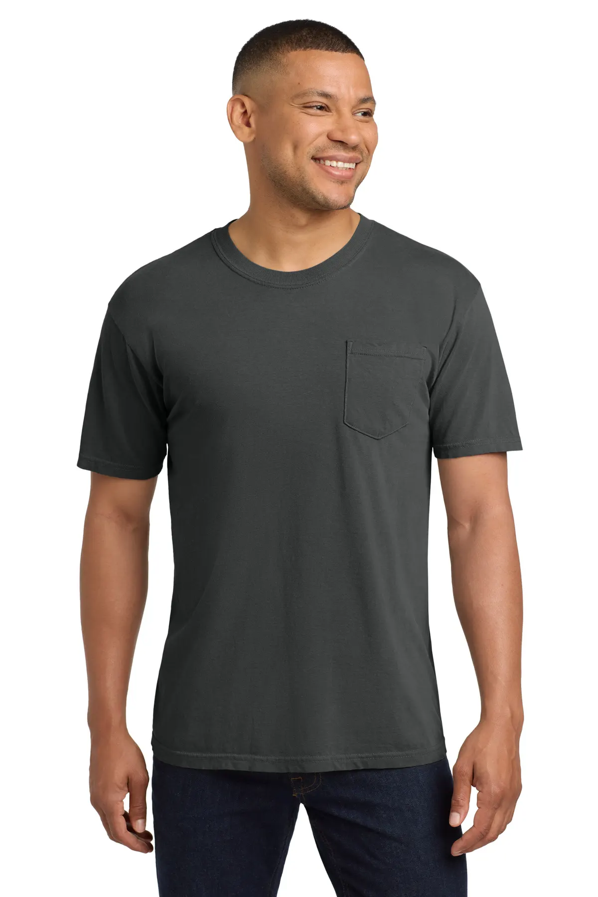 This heavyweight pocket tee delivers comfort and utility in one garment. Garment-dyed for a soft, lived-in feel, it features a left chest pocket and a relaxed, seamless body construction. Durable stitching and classic rib collar add lasting style.