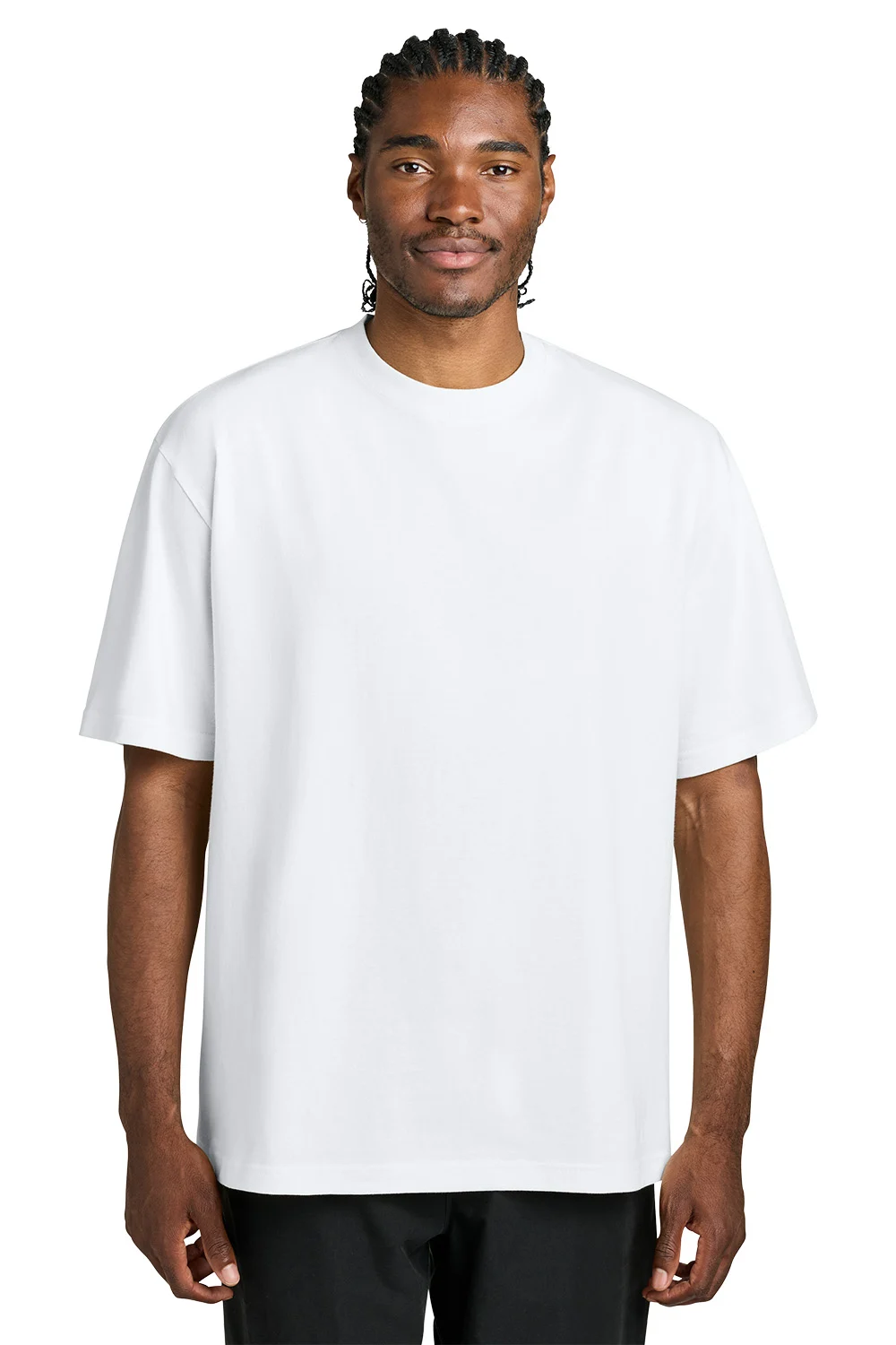 Oversized fit with dropped shoulder and wider neckline provides a relaxed, streetwear-ready silhouette.