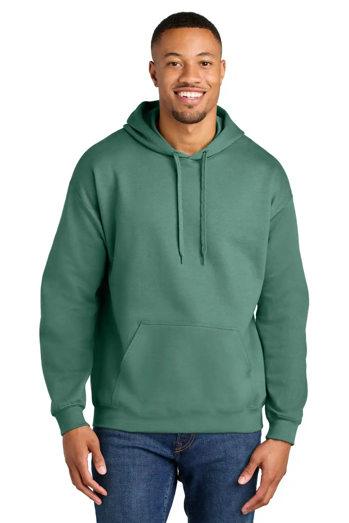 Crafted for ultimate comfort, this hoodie blends 80/20 cotton/poly with a 100% cotton face. Two-piece, dyed-to-match jersey fabric-lined hood, dropped shoulder, 1x1 rib knit with spandex cuffs and bottom band, and double-needle hem ensure durability. Select colors available from XS to 5XL.
