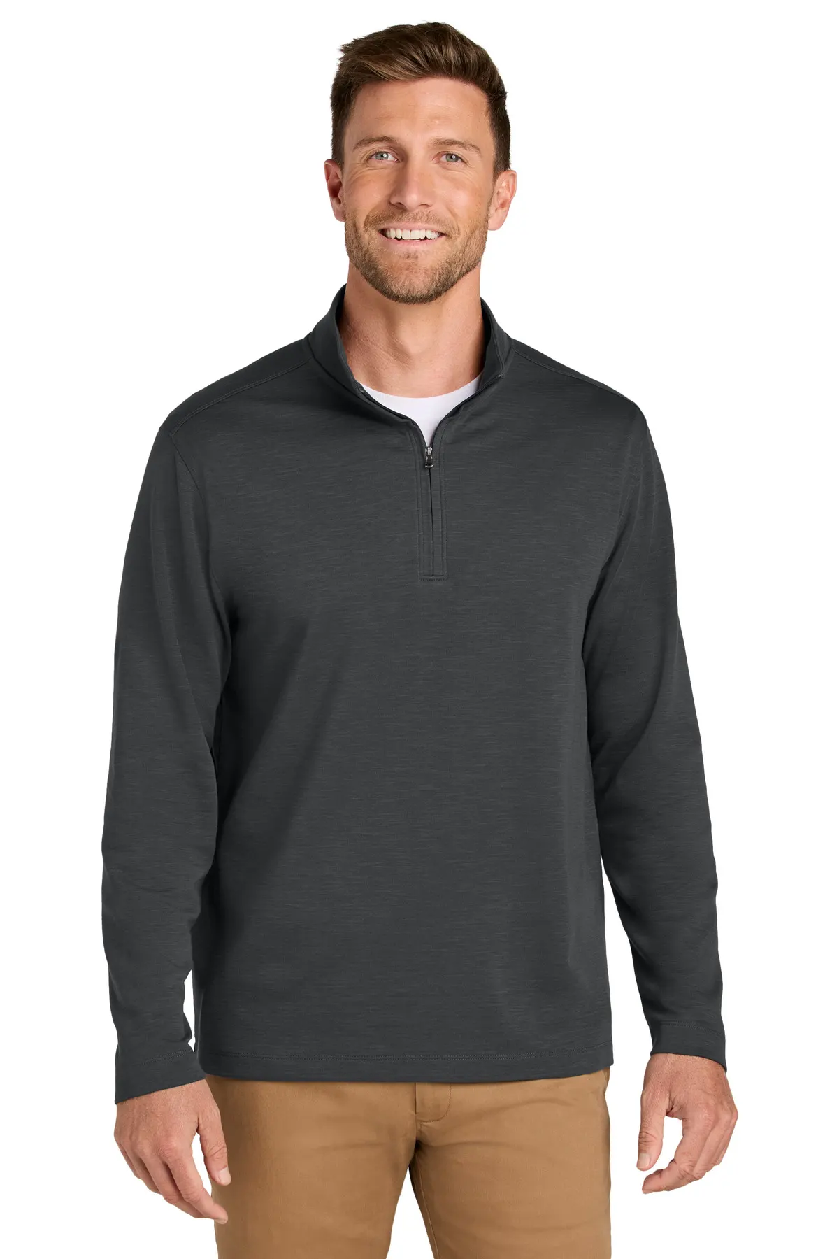 The Port Authority Breakwater 1/4-Zip Pullover offers lightweight layering with subtle texture. Crafted from a cotton-poly blend, it provides breathable comfort. A cadet collar with topstitch detailing adds refinement. The covered coil zipper ensures durability. Forward shoulder seams improve fit. Set-in sleeves enhance structure. Self-turned cuffs and hem create a clean finish. Ideal for casual offices and everyday wear.