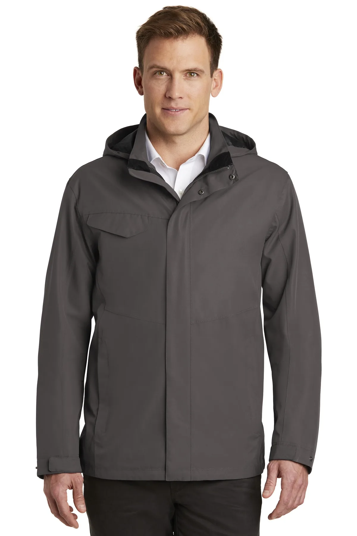 The Collective Outer Shell Jacket provides a versatile, waterproof layer that integrates seamlessly with other Collective styles. Its 100% polyester shell is treated with a DWR finish and fully seam-sealed to repel water, while breathable polyester printed lining keeps you comfortable. Adjustable hood with locking drawcord, full-length interior and exterior storm flaps, and snap cuffs enhance protection from wind and rain. Front zippered and chest pockets provide secure storage, and adjustable drawcord hem ensures a snug fit. Slightly longer length offers additional coverage. Designed for layering with zip-in Collective pieces via snap attachments, it is ideal for professionals or outdoor enthusiasts seeking customizable weather protection. Port Pocket™ allows easy branding.