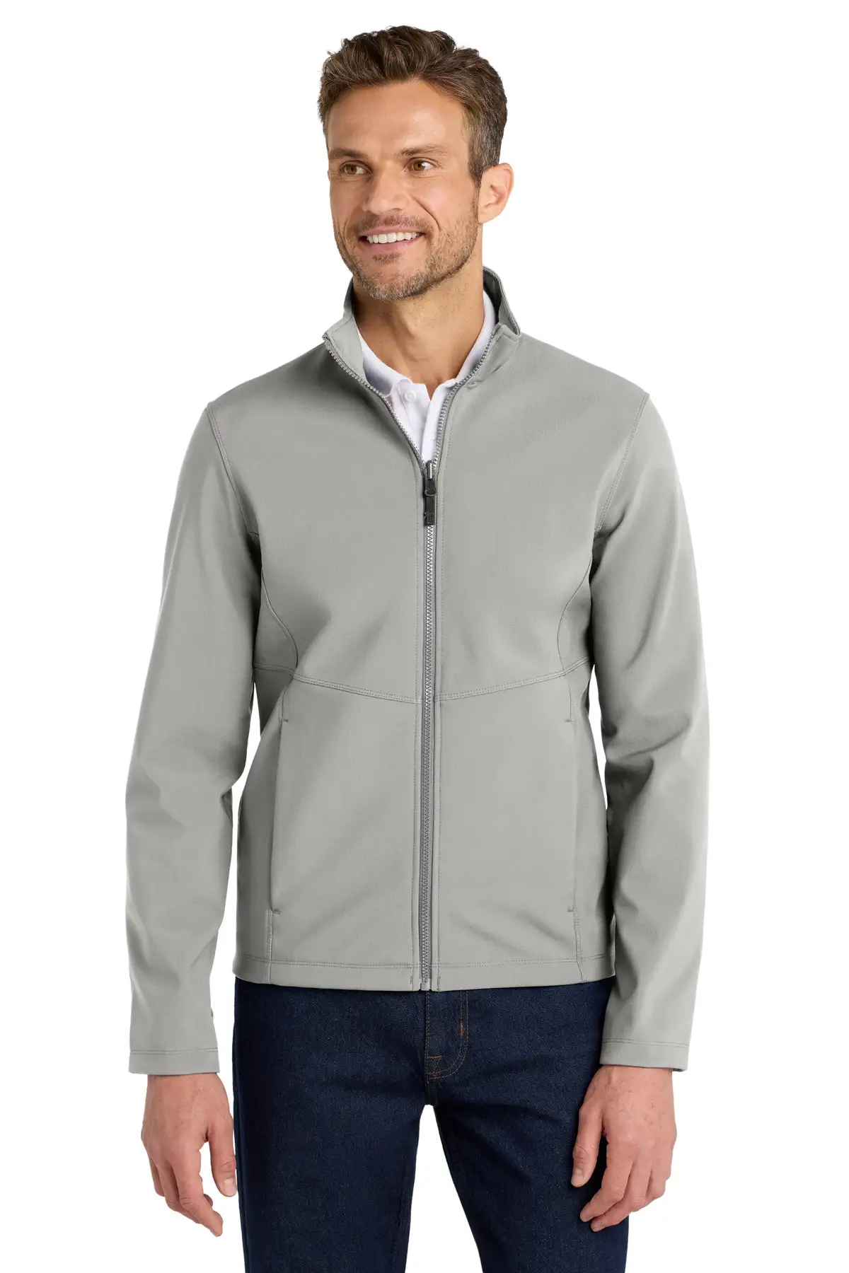 This soft shell jacket features a subtle mini ripstop texture for durability and style. Constructed from 94/6 poly/spandex woven fabric with DWR finish bonded to a water-resistant film insert, it is lined with brushed polyester tricot for comfort. Molded center front zipper and reverse-coil zippered pockets provide functionality and secure storage. Slightly longer length enhances coverage. Designed to zip into outer Collective layers via snap attachments, it allows easy layering for variable conditions. Wind- and water-resistant, breathable, and lightweight, it is perfect for professional, commuting, or casual outdoor wear. Its clean, sleek lines make it suitable for multiple occasions.