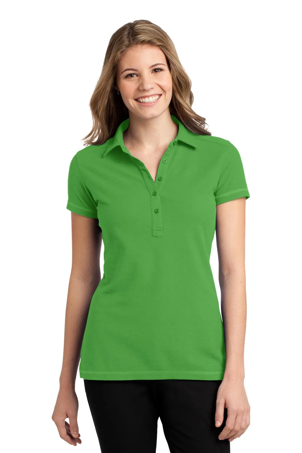 The Ladies Modern Stain-Resistant Polo is engineered for demanding work environments where appearance and durability are essential. Designed with a contemporary, trim fit, this polo delivers a polished look while maintaining exceptional comfort throughout long shifts. The cotton/poly double pique knit wicks moisture efficiently, helping regulate body temperature in fast-paced settings. Advanced odor-fighting properties keep the garment feeling fresh, while wrinkle- and shrink-resistance ensure a consistently neat appearance. A soil-release finish makes laundering easier and helps stains wash out effortlessly, making this polo especially well-suited for restaurants, bars, and food service operations. Thoughtful tailoring, including princess seams and a shaped back yoke, enhances the feminine silhouette without restricting movement.