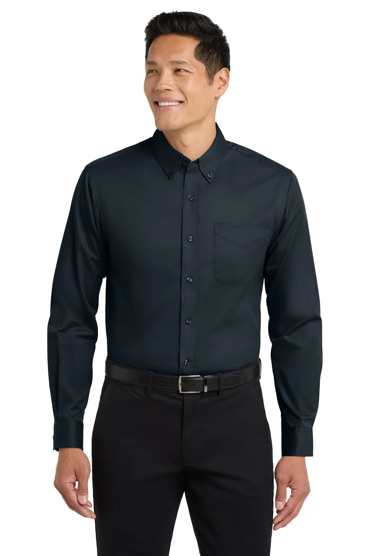 The Long Sleeve Easy Care Shirt focuses on operational efficiency without compromising workplace standards. Constructed from a balanced cotton-poly blend, it delivers comfort alongside dependable wrinkle resistance. Designed as a wash-and-wear solution, it reduces preparation time while maintaining a crisp look. The button-down collar reinforces structure, ensuring reliable presentation across long workdays. Dyed-to-match buttons support a streamlined aesthetic, and the left chest pocket adds practical functionality. A back box pleat enhances mobility, preventing pulling across the shoulders during movement. Adjustable cuffs allow refinement of sleeve fit, improving overall comfort. Durable enough for repeated laundering, this shirt performs consistently across large uniform programs. Direct in purpose and reliable in execution, it is built for organizations that prioritize efficiency and professionalism equally.