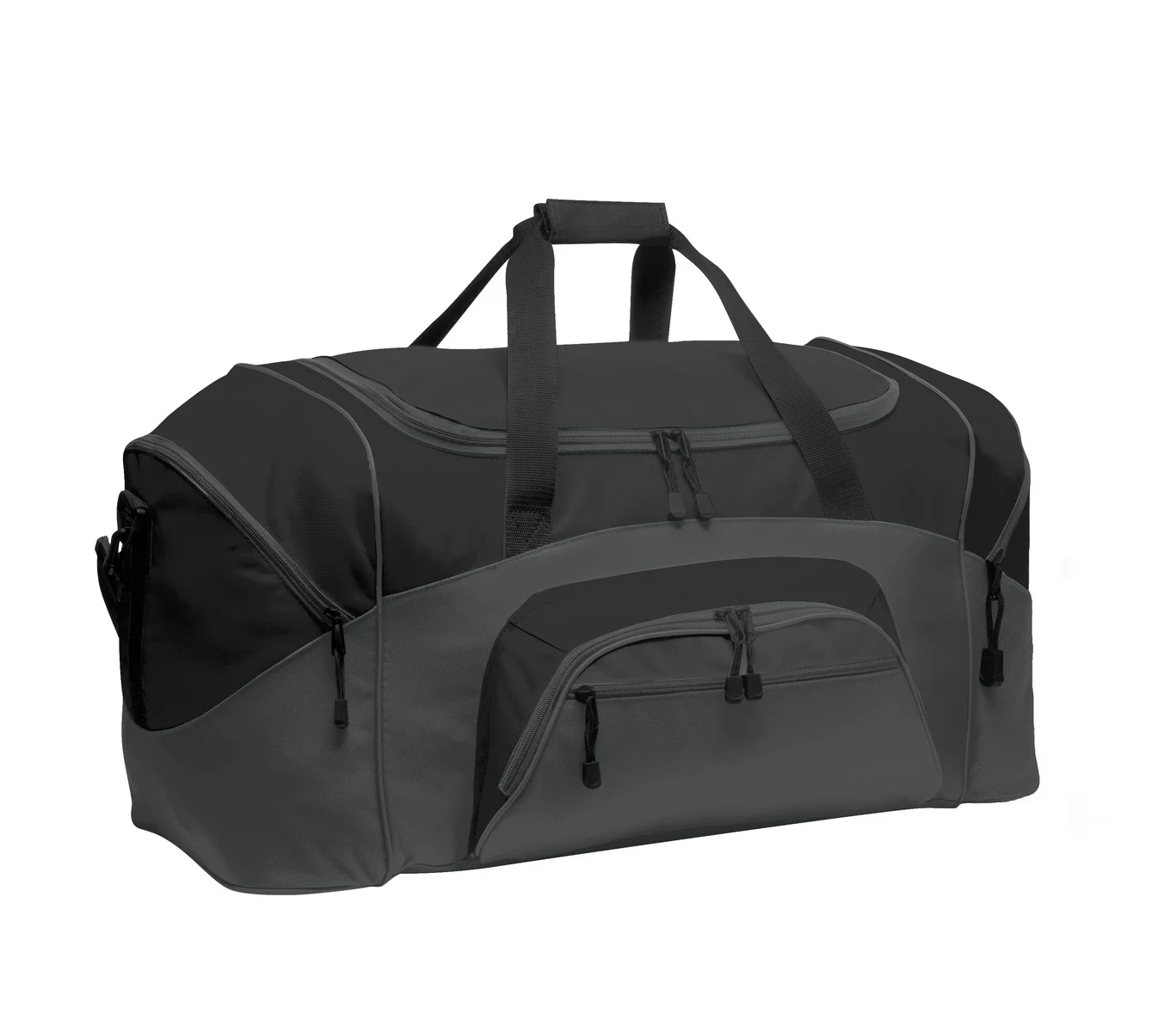 Designed as a best-selling staple, this standard colorblock sport duffel offers generous capacity and dependable construction for athletes and teams. Made from 600-denier polyester canvas with a durable lining, it withstands heavy use season after season. The D-shaped zippered entry allows quick access to the main compartment, simplifying packing and unpacking. Two large zippered end pockets provide space for shoes or equipment, while additional front zippered pockets help organize smaller items. The padded carry handle enhances comfort during transport, and the adjustable shoulder strap offers flexible carrying options. Bold colorblocking adds a sporty aesthetic while improving visibility. Ideal for practices, games, or travel, this duffel balances capacity, organization, and durability.