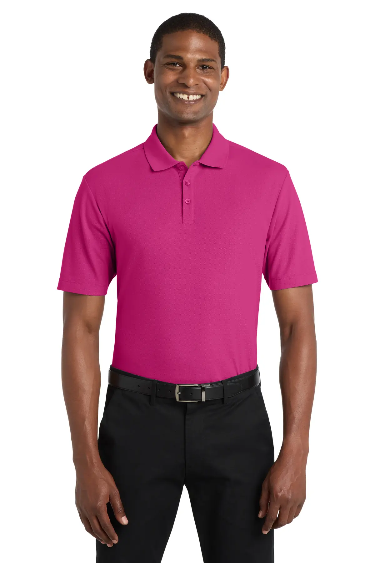 The Port Authority SuperPro React™ Polo delivers classic uniform style with advanced performance. Stain-release technology helps maintain a clean appearance. Snag-resistant fabric enhances durability. Easy-care construction simplifies maintenance. The flat knit collar adds structure. A tag-free label ensures comfort. The three-button placket completes the timeless design. Rental-friendly construction makes it ideal for uniform programs.