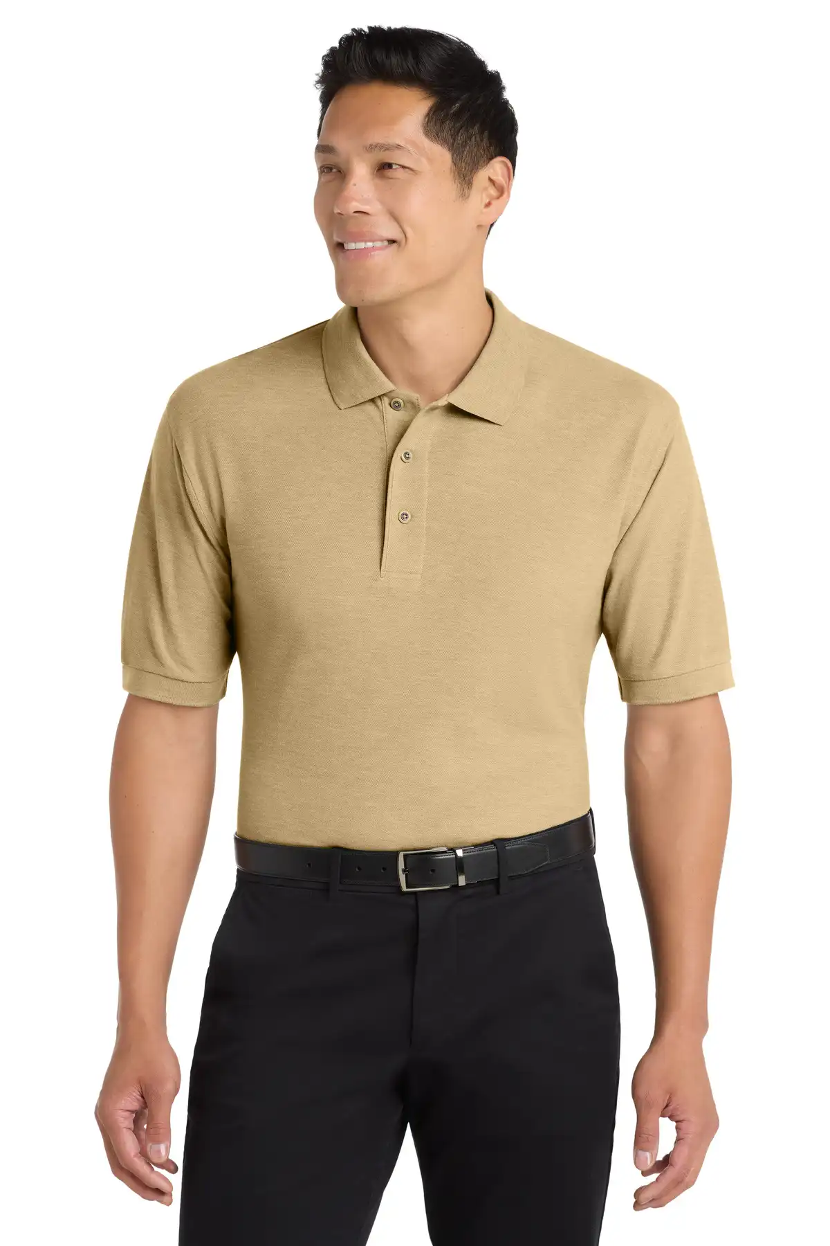 The Tall Silk Touch™ Polo is a uniform staple with superior wrinkle and shrink resistance. Constructed from 5-ounce 65/35 poly/cotton pique, it has a silky soft hand and exceptional comfort. Flat knit collar and cuffs, metal buttons with dyed-to-match plastic rims, double-needle armhole seams and hem, and side vents ensure long-lasting professional presentation.