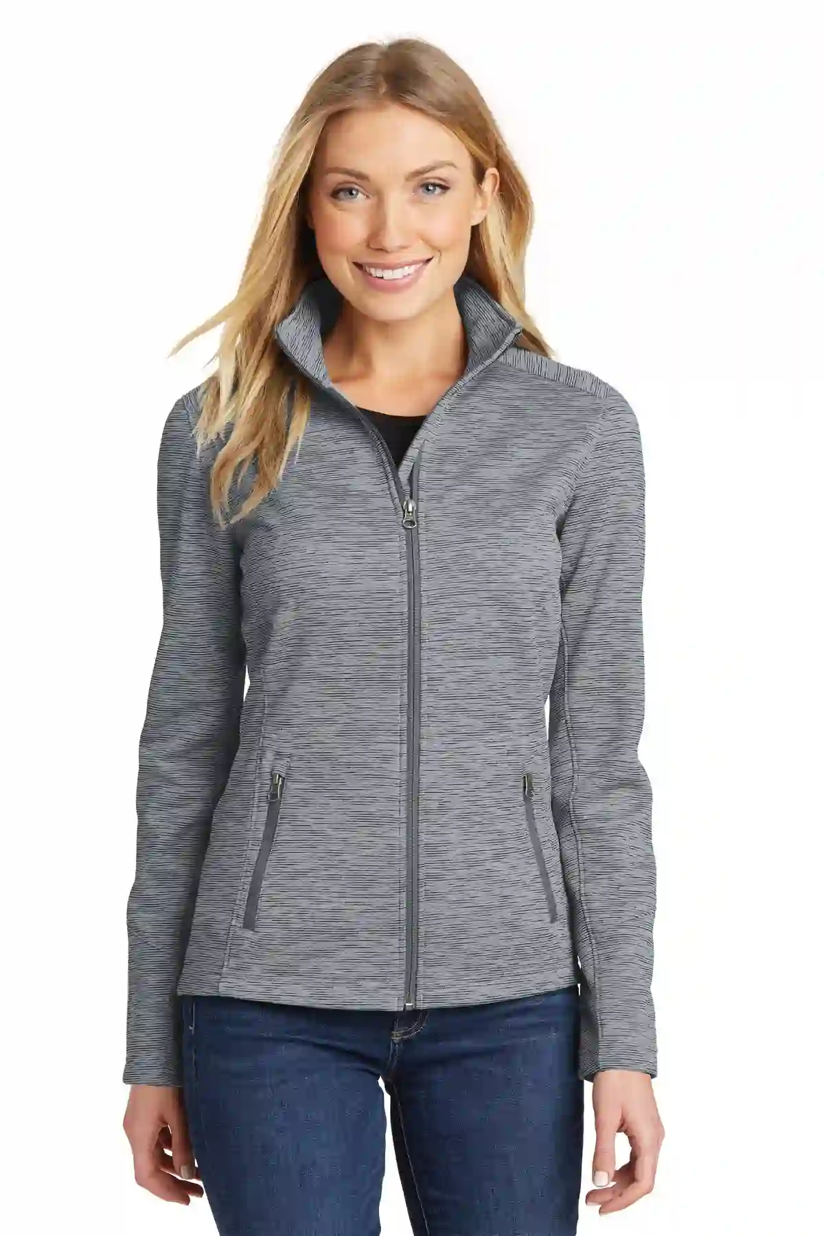 This fleece jacket features a subtle digital stripe texture that delivers a modern, refined look. Designed for versatility, it transitions effortlessly from activewear to office-ready style. The midweight fleece fabric provides reliable warmth while remaining comfortable for extended wear. A low-pill finish ensures the jacket maintains a clean appearance over time. The streamlined silhouette complements a wide range of outfits. Full-zip styling allows for easy layering throughout the day. Secure zippered pockets add practical storage. Open cuffs and hem enhance comfort and mobility. Ideal for daily wear in cooler conditions. A smart balance of performance and polish.