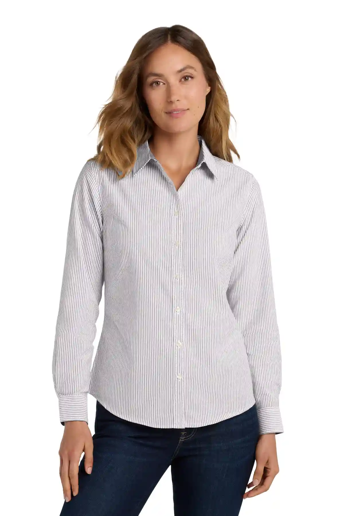 This trusted Oxford shirt delivers professional polish with wrinkle resistance and stain-release capabilities. Constructed from 4.6-ounce, 60/40 cotton/polyester, it features an open collar, bust darts, back shoulder pleats, and rounded adjustable cuffs. Additional detailing includes contrast fabric inside collar and under cuffs, and contrast buttonholes on sleeve placket and cuffs for subtle visual appeal. Perfect for corporate uniforming or professional wardrobe.