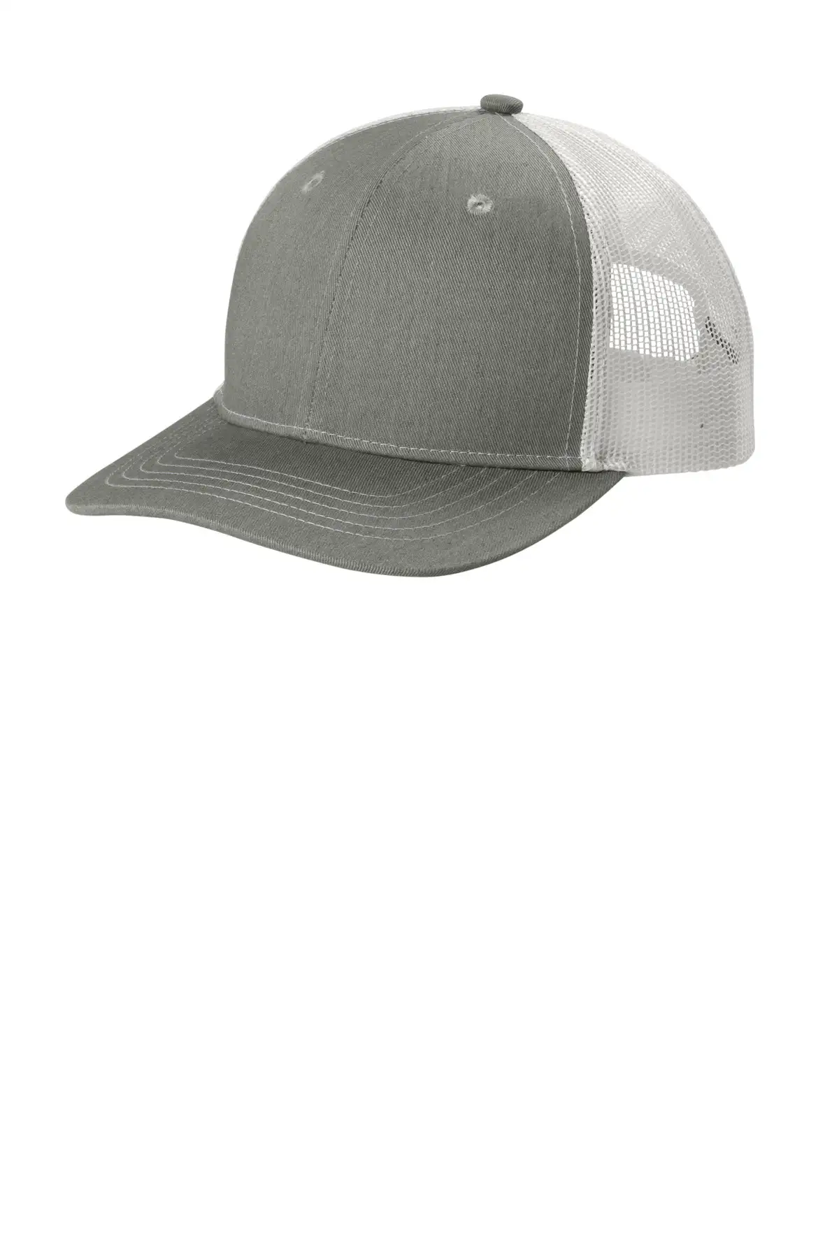 • Fabric: 100% cotton twill (solids), 65/35 poly/cotton (Heather Grey), 100% polyester mesh mid/back panels