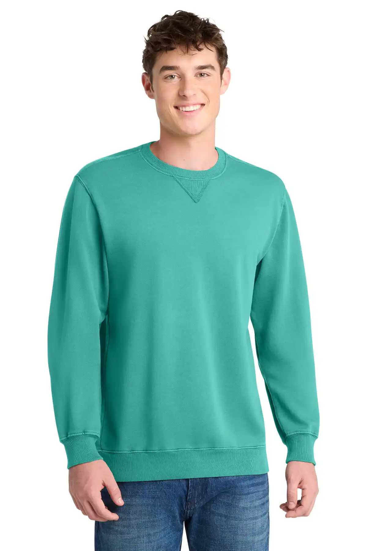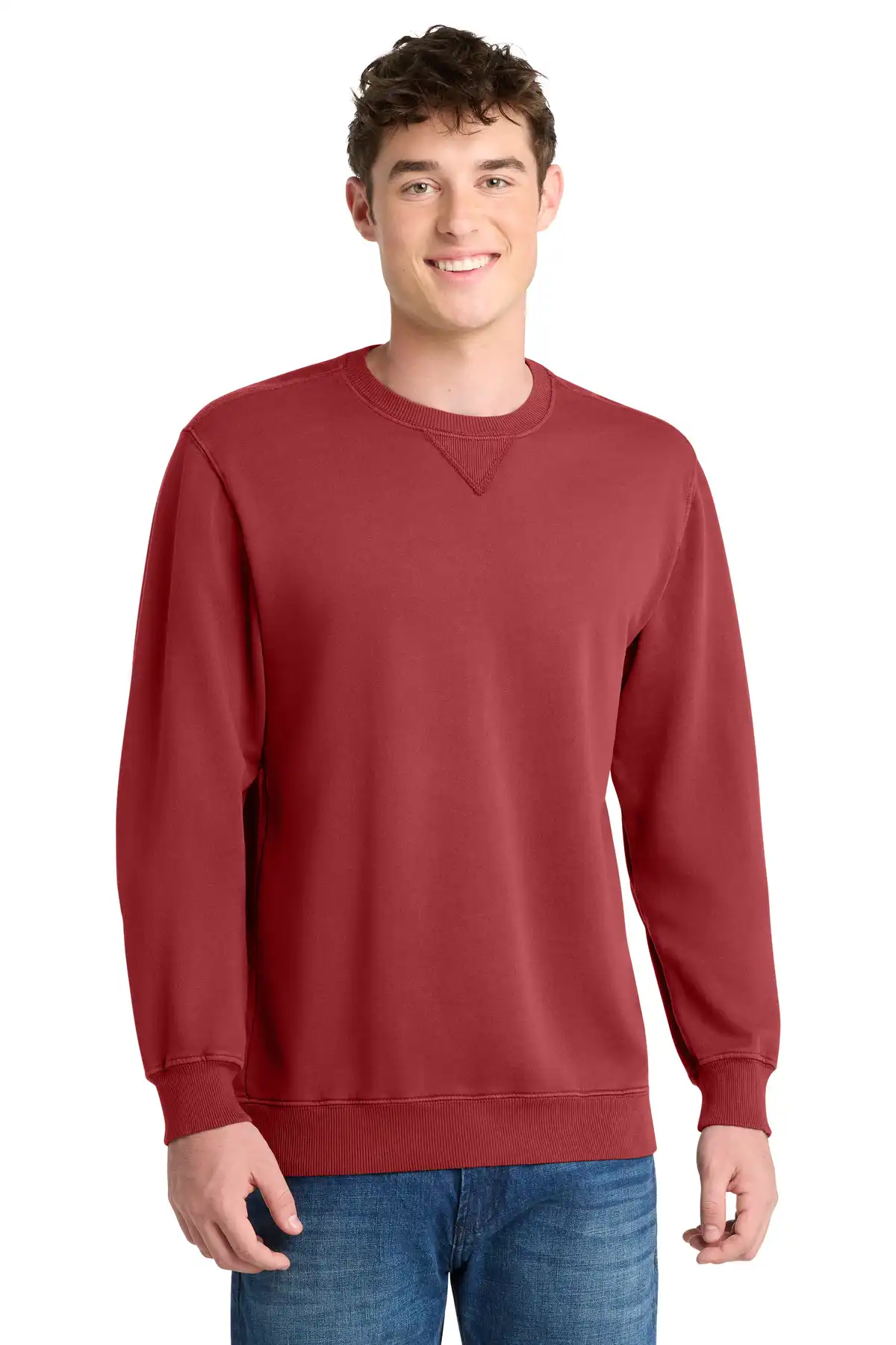 This crewneck sweatshirt offers a soft, worn-in vintage feel with an 8.6-ounce 80/20 ring-spun cotton/poly fleece construction and 100% cotton face. The garment-dye process delivers aged-to-perfection colors for a classic look. Features a 2x2 rib knit collar, cuffs, and hem with a V-inset at the neck for added style. Side seams enhance the feminine silhouette. Tear-away labels provide comfort and relabeling options. Ideal for casual layering, outdoor activities, or lounging, this sweatshirt combines comfort, durability, and timeless style.