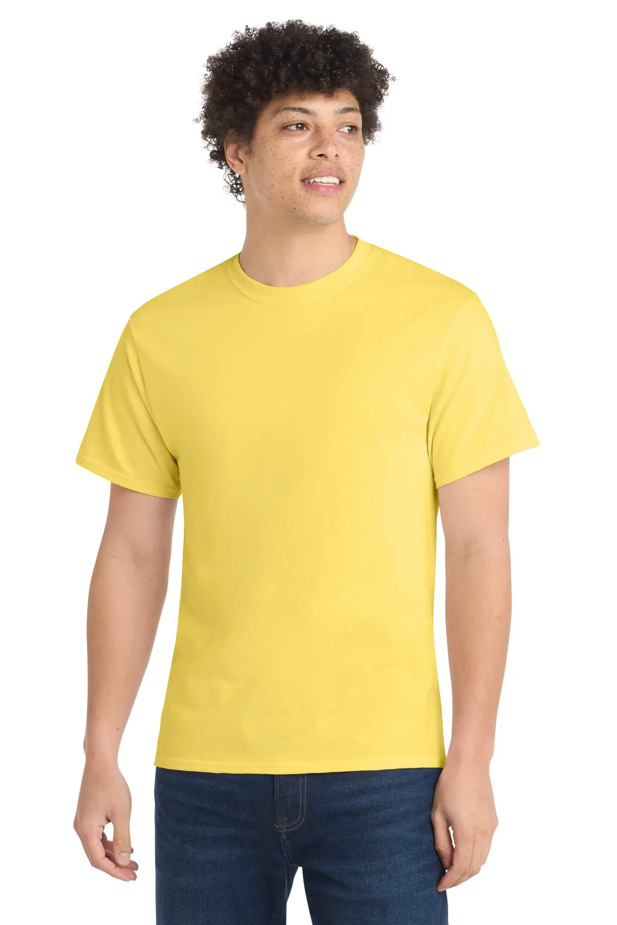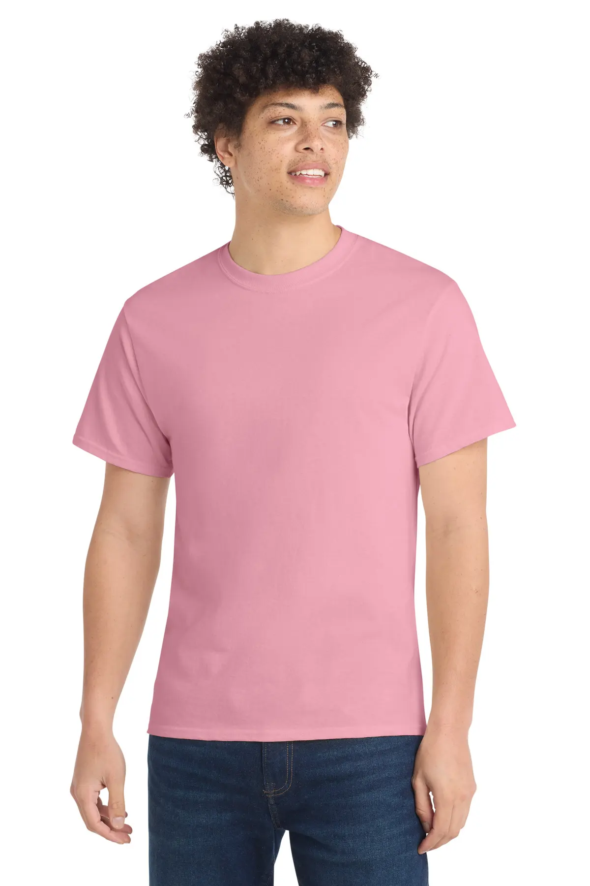 An indispensable t-shirt, the Core Cotton Tee features a classic silhouette at a friendly price. Crafted from 5.4-ounce, 100% cotton or cotton/poly blends depending on color, it offers softness, durability, and breathability. Side seams create a contoured fit for a flattering feminine shape. A removable tag ensures tag-free comfort, while minimally processed natural colors retain authentic cotton tones. Perfect for casual wear, layering, or printing, this tee is a versatile and reliable wardrobe staple. Lightweight yet durable, it holds up through repeated washes.