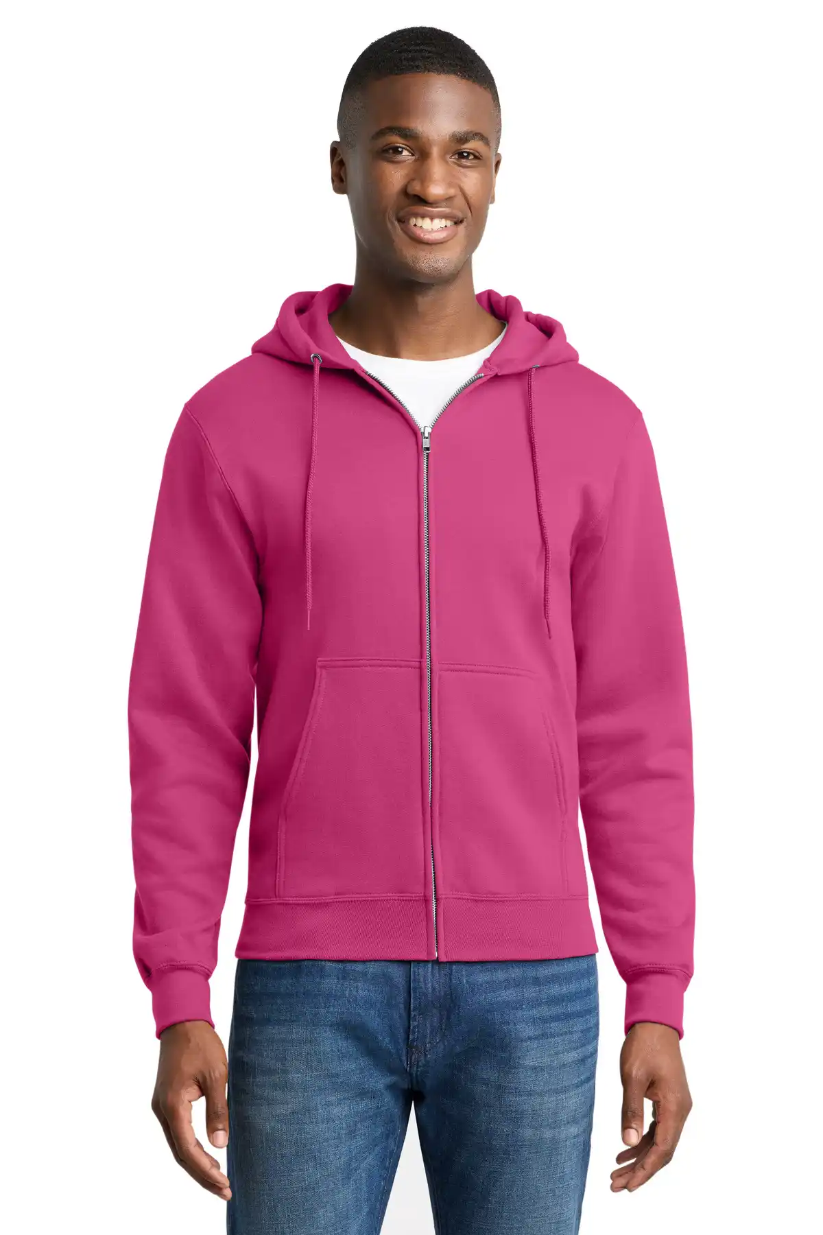 The Core Fleece Full-Zip Hooded Sweatshirt offers timeless style combined with superior comfort. Crafted from 7.8-ounce, 50/50 cotton/poly fleece, it boasts a plush interior and elegant, smooth exterior. Air-jet yarn construction enhances softness while reducing pilling, maintaining a refined look. The full YKK metal zipper enables effortless layering and adds a premium touch. The self-fabric hood lining ensures warmth without bulk. Dyed-to-match drawcords provide adjustable coverage and style. Front pockets deliver practicality without sacrificing sophistication. Ribbed cuffs and hem enhance fit and comfort. Tear-away labels prevent irritation while maintaining a polished appearance. Perfect for outdoor layering, casual settings, or athleisure, this sweatshirt exudes luxury and versatility. Durable, long-lasting stitching ensures it remains a staple for years.