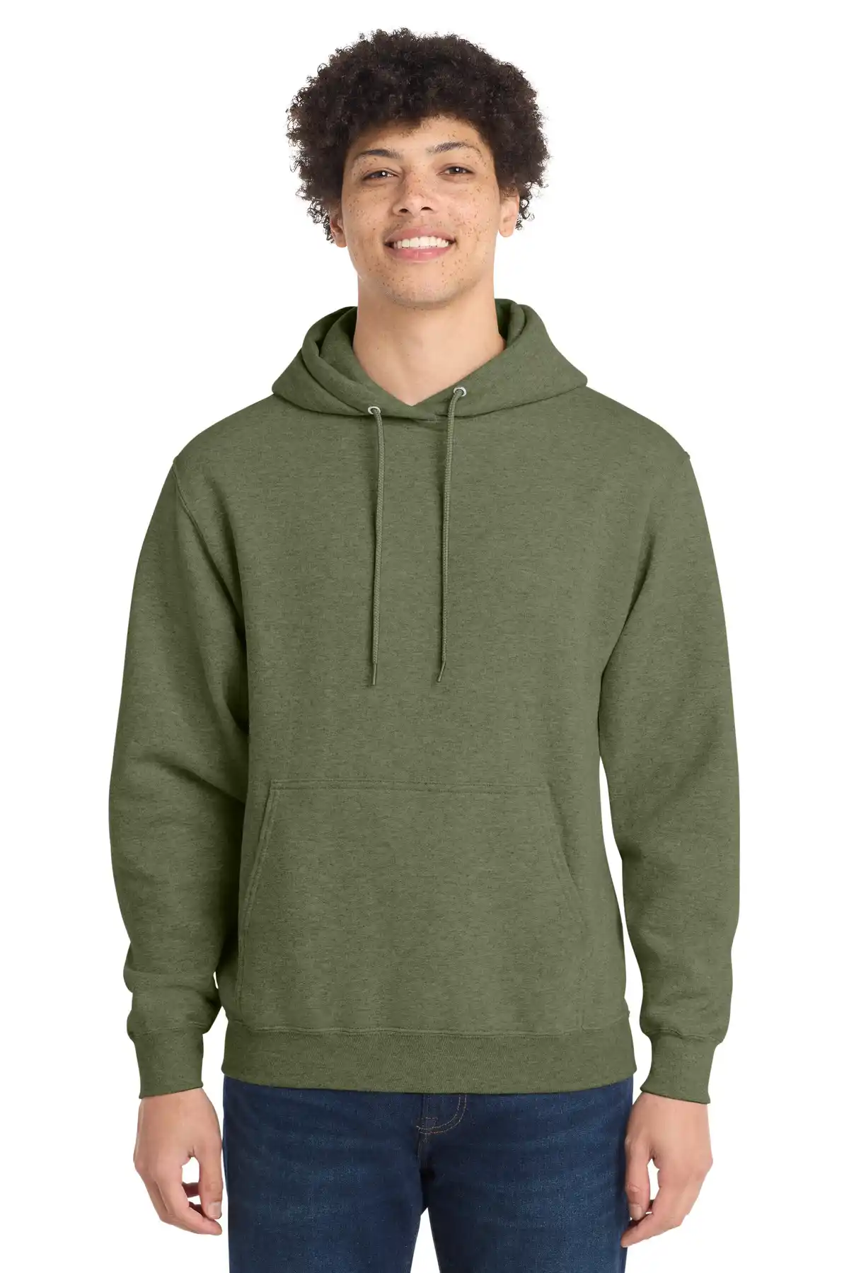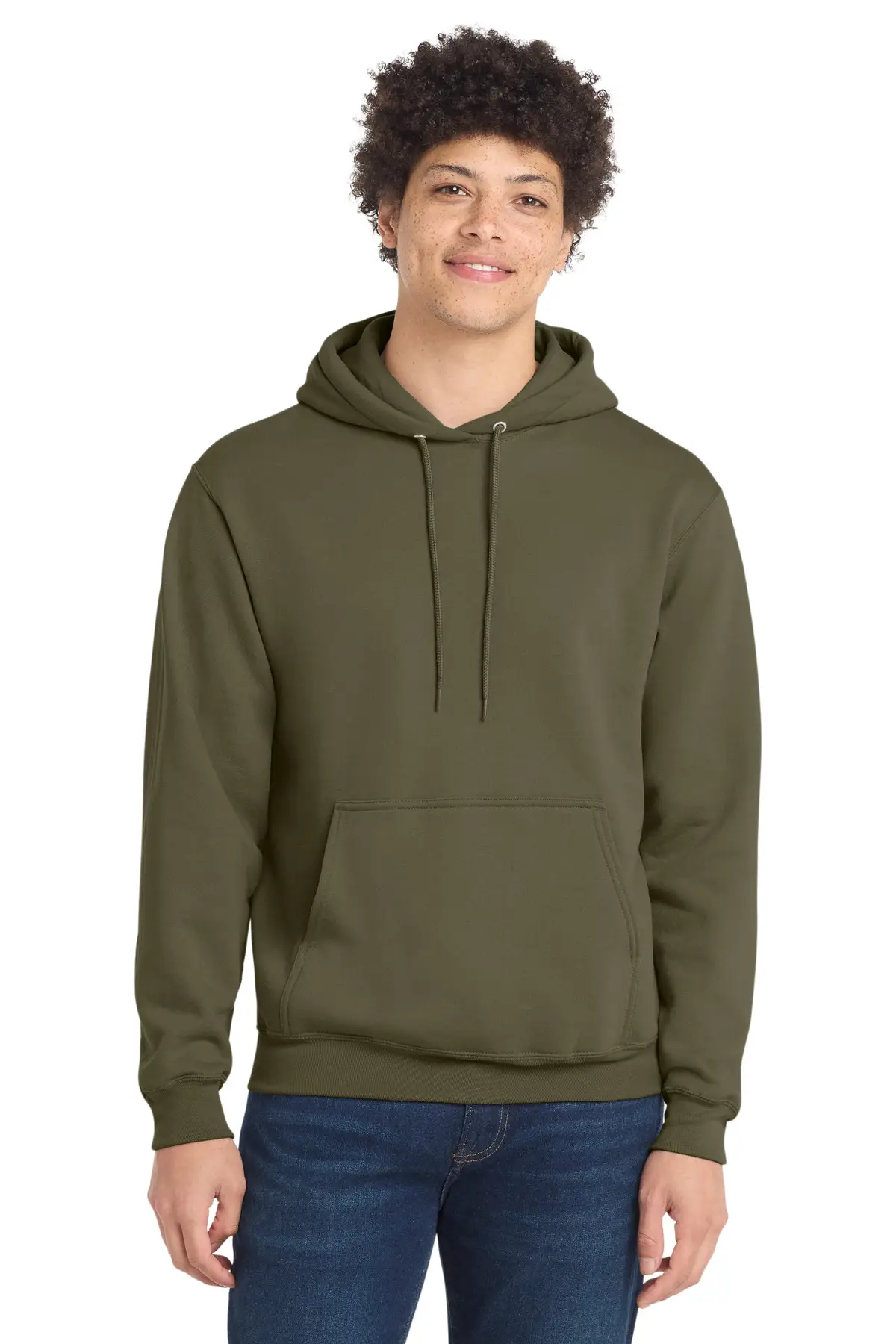 7.8-ounce 50/50 cotton/poly fleece provides a soft, plush interior for cozy wear.