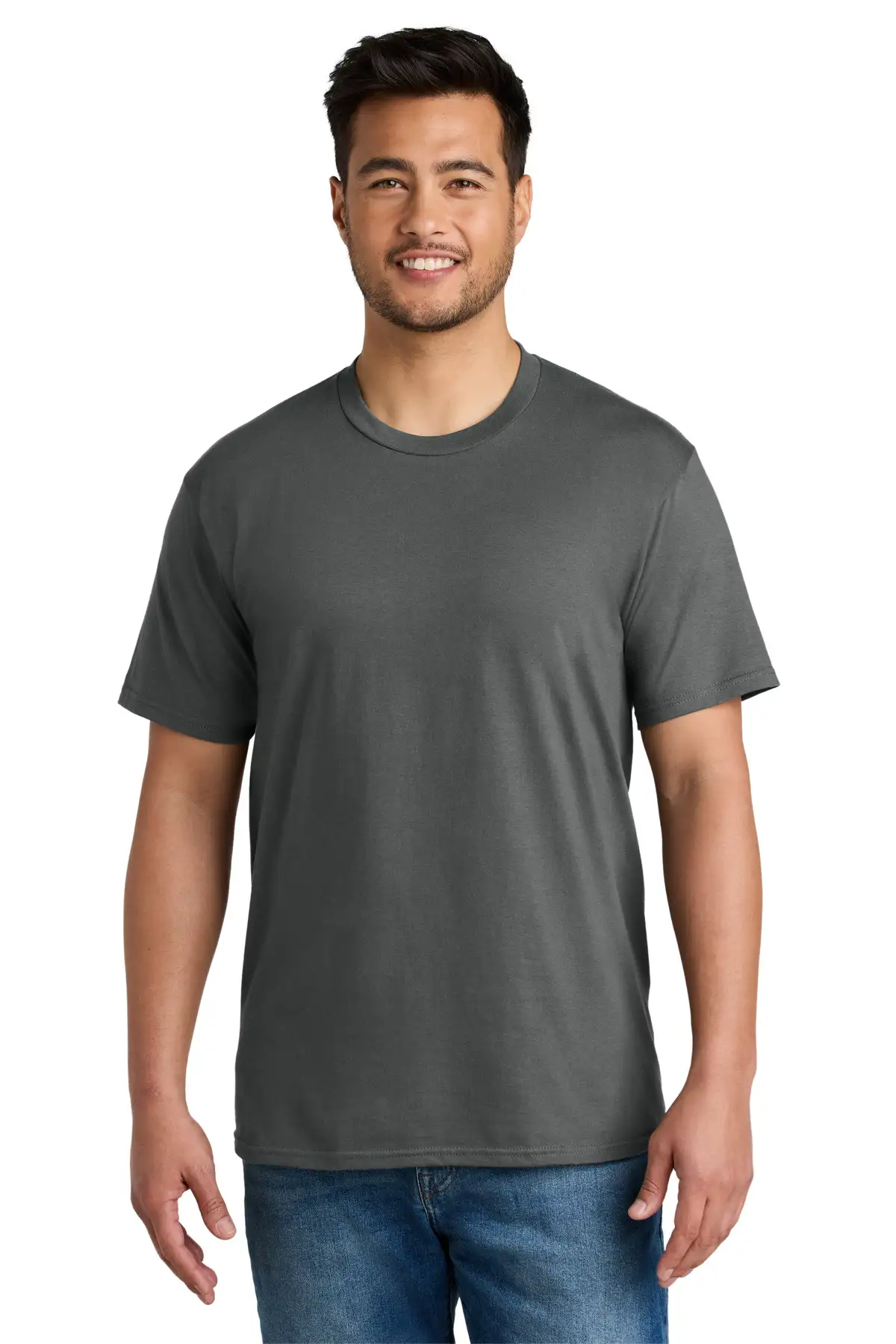 This soft and budget-friendly CVC tee combines 60% cotton with 40% polyester for a unique texture and premium feel. Lightweight at 4.5 ounces, it is breathable and comfortable for all-day wear. The 1x1 rib knit crewneck ensures a classic fit, while shoulder-to-shoulder taping reinforces the tee’s durability. Tear-away labels provide a comfortable, tag-free experience. Side seams give a contoured fit, flattering the female silhouette. Ideal for casual wear, school, or light outdoor activity, this tee maintains its softness and color wash after wash. Its versatility allows for layering, customization, or standalone wear.