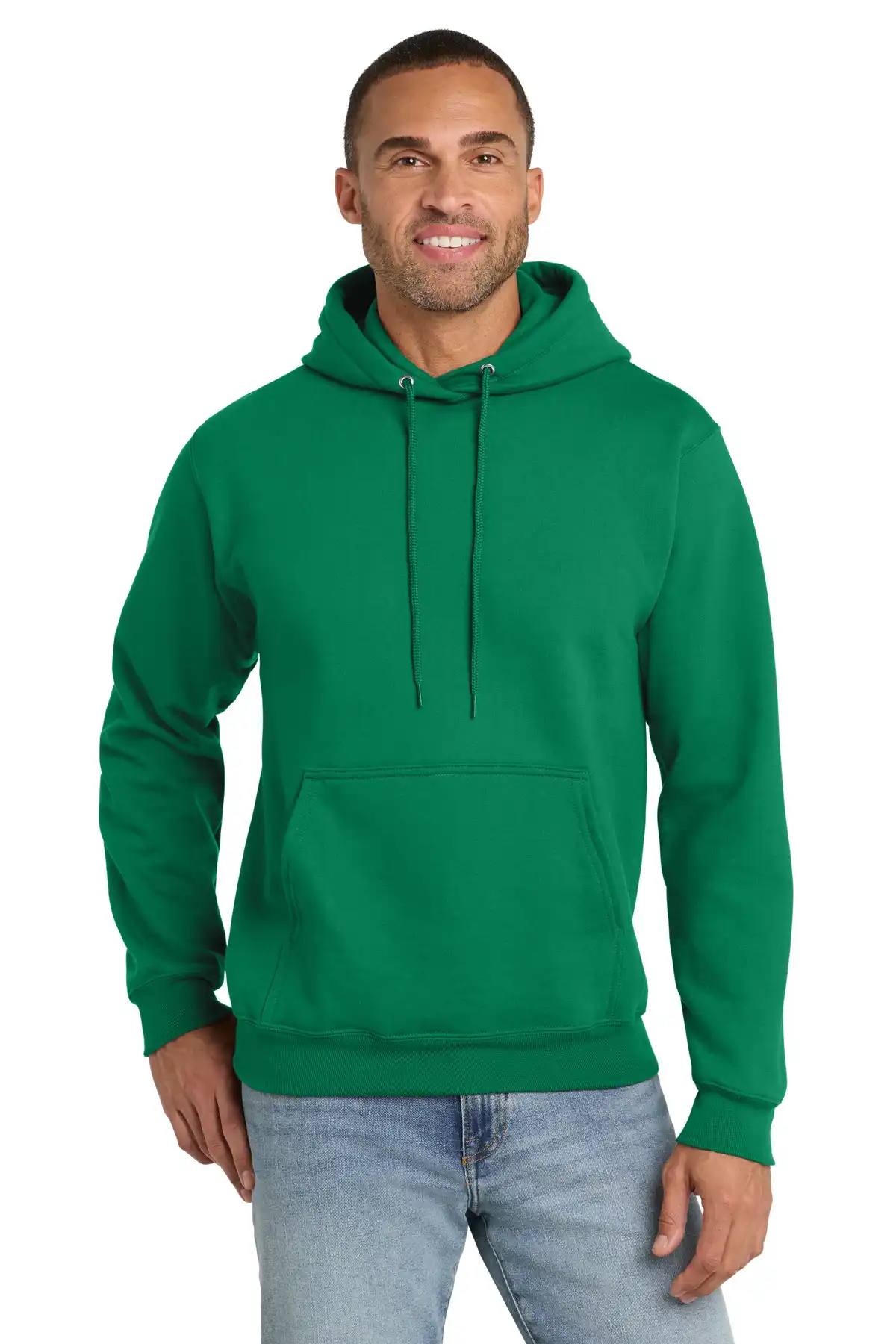 Elevate your casual wardrobe with the Port & Company® Essential Fleece Pullover Hooded Sweatshirt. Made with 9-ounce 50/50 cotton/poly fleece, it delivers a rich, soft hand feel combined with long-lasting durability. The unlined hood adds a relaxed silhouette while pouch pockets provide practical storage and cozy hand warmth. Air-jet yarn enhances softness and reduces pilling, giving this sweatshirt a premium touch. Tear-away labels prevent irritation, and reinforced stitching ensures it stands up to repeated wear. Perfect for lounging at home, running errands, or layering over tees, this versatile piece blends comfort, functionality, and style. Its tailored fit and luxurious fleece make it ideal for anyone seeking everyday comfort without compromising elegance.