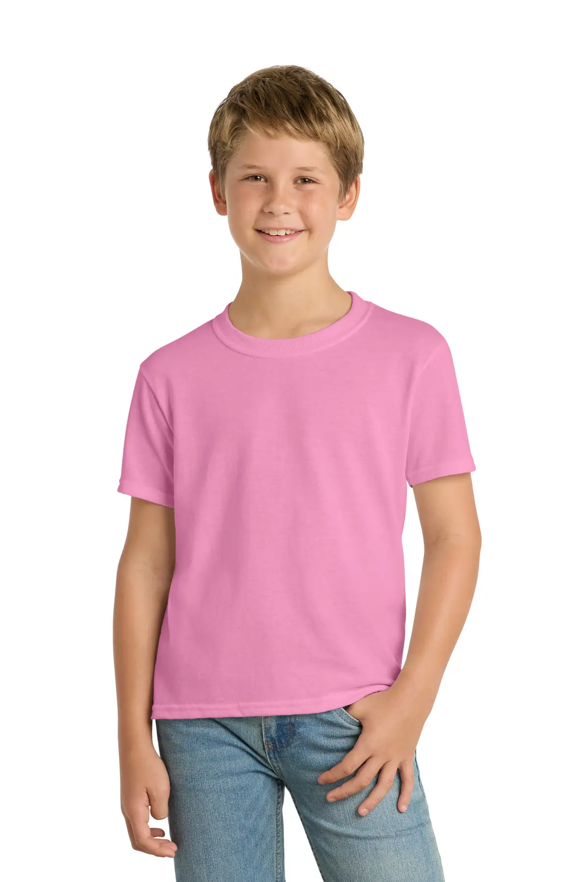 A youth-sized version of the Core Blend Tee, offering soft comfort, durability, and a classic fit. Made from 5.5-ounce, 50/50 cotton/poly, it is side-seamed for a contoured silhouette and features a removable tag for a tag-free experience. Lightweight, breathable, and versatile, it’s perfect for school, casual, or team wear. Special care is advised for neon fabrics when decorating.