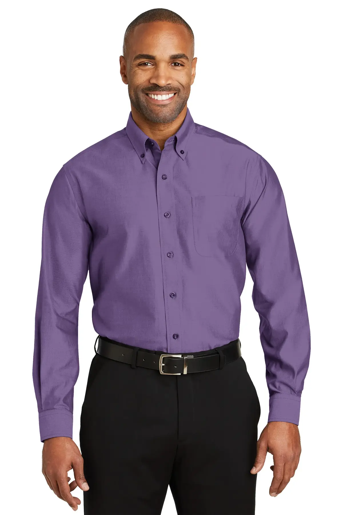 A premium uniforming staple, this Non-Iron Pinpoint Oxford Shirt combines the impeccable appearance of 100% cotton with advanced non-iron performance technology. Woven from fine cotton yarns, the pinpoint oxford fabric provides a smooth, refined texture with a crisp drape. The wrinkle-resistant treatment allows the shirt to maintain a sharp, pressed look throughout the day without ironing. Pucker-free single-needle tailoring reinforces seam durability and preserves clean lines. A button-down collar and left chest pocket complete the classic business silhouette, while Red House® engraved buttons and a monogram on the right sleeve placket add executive-level detailing.