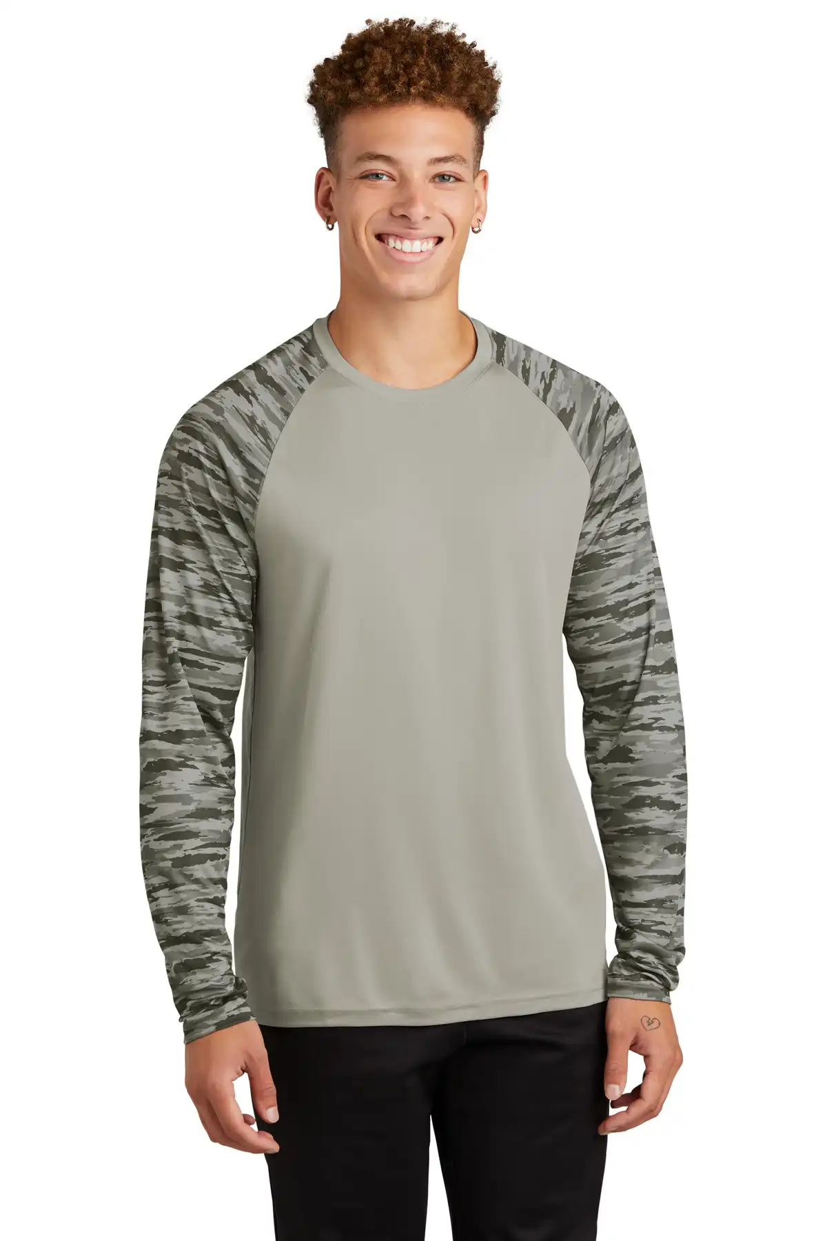 This long sleeve version of the Drift Camo Colorblock Tee combines all-over drift camo design with full-arm coverage for additional protection. Moisture-wicking fabric keeps you dry and comfortable. Solid body incorporates color-locking PosiCharge technology for vibrant, long-lasting color. Raglan sleeves allow free movement during any activity. Lightweight and breathable, ideal for outdoor or indoor performance. Tear-away label improves comfort.