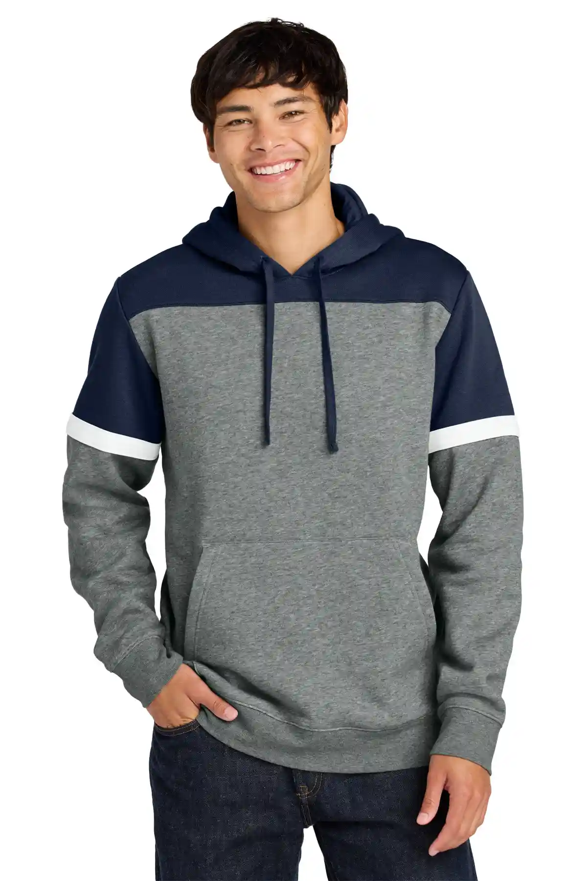 The Drive Fleece Colorblock Hoodie is built for visible team pride with structured durability and everyday comfort. Constructed from 7.5-ounce, 60/40 cotton/poly Vintage Heather fleece, it offers a soft, natural hand feel while maintaining shape retention. The colorblock layout highlights team colors across the hood, upper chest, and shoulders for bold contrast. A jersey-lined hood improves comfort and structure, while dyed-to-match flat knit drawcords maintain a clean finish. Twill back neck tape enhances durability, and self-fabric sleeve sport stripes reinforce the athletic aesthetic. Rib knit cuffs and hem provide secure fit and long-term resilience.