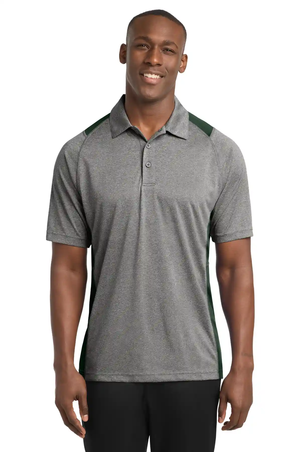 Color pops at shoulders and sides for a modern, sporty aesthetic. Lightweight polyester jersey with interlock panels ensures moisture-wicking and snag resistance. Raglan, open-hem sleeves and double-needle stitching enhance comfort and durability, making it a versatile team or performance polo.