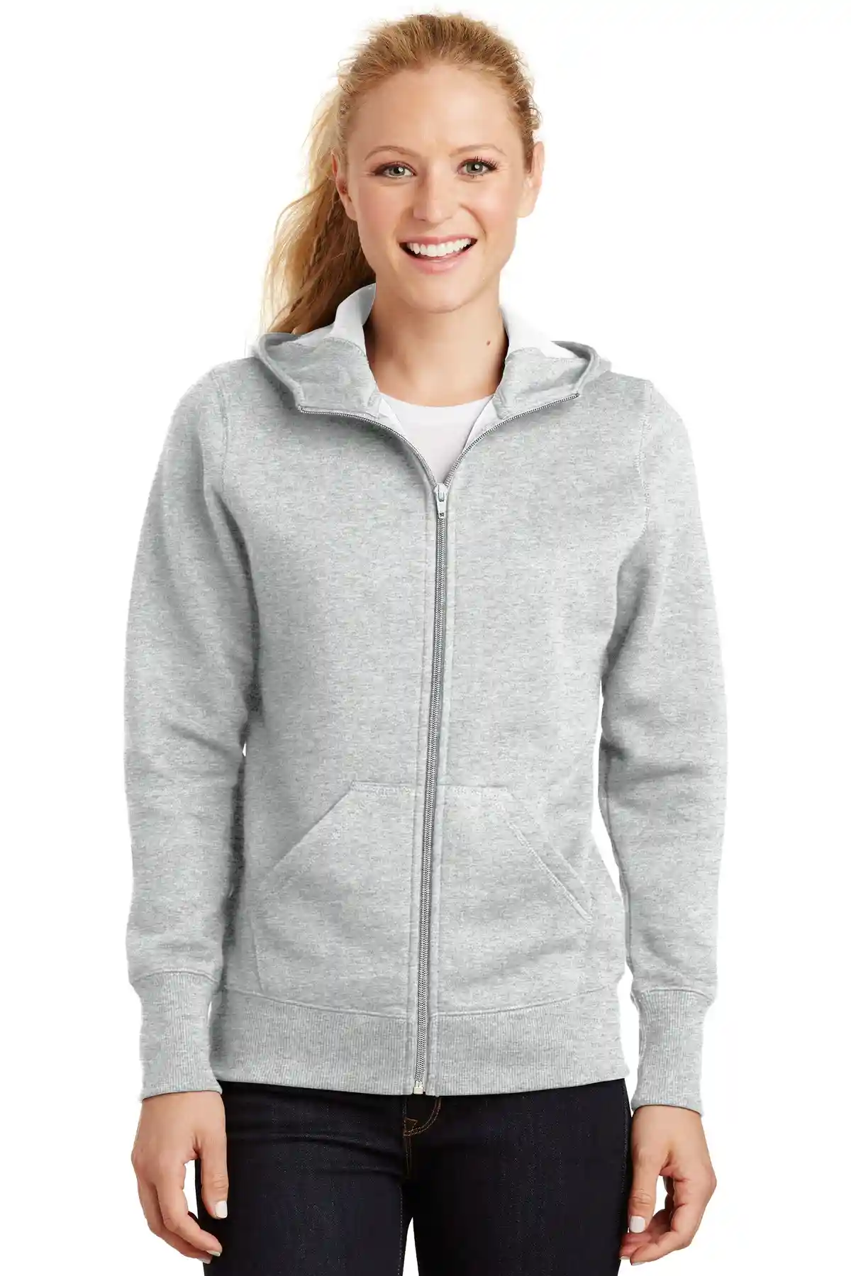 This full-zip fleece jacket features a three-panel hood and durable cotton/poly blend. Rib-knit cuffs and hem with spandex offer secure fit. Front pouch pockets provide convenient storage. Perfect for casual wear or layering over athletic tops.