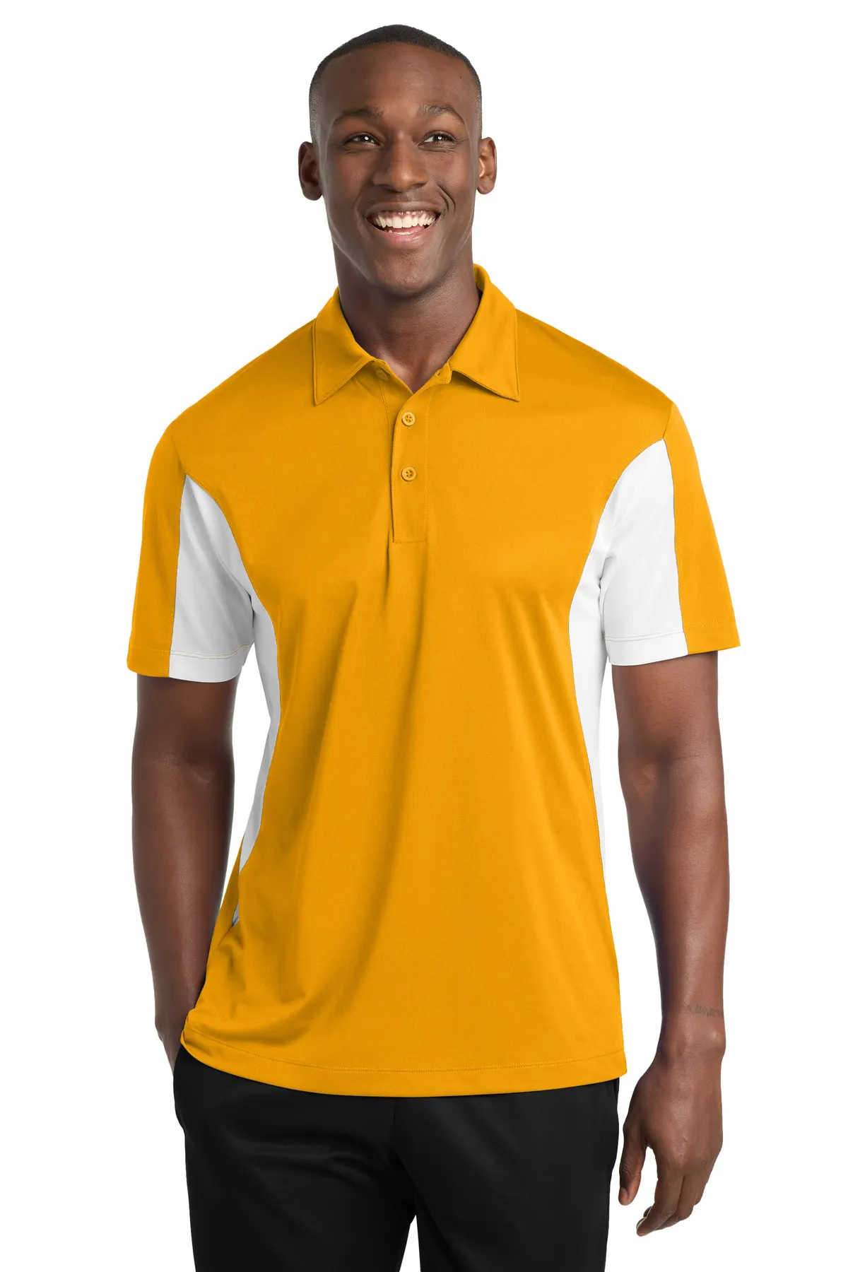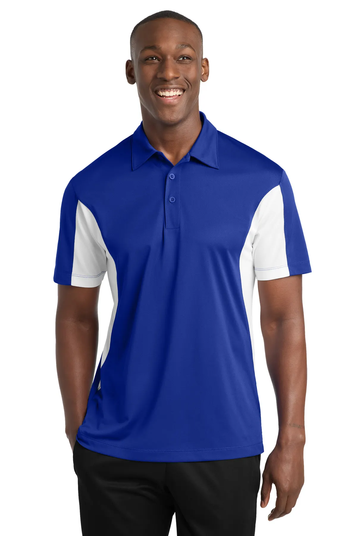 Smooth micropique fabric with colorblock panels at sides, sleeves, and back collar provides a modern, athletic aesthetic. Moisture-wicking and snag-resistant polyester ensures comfort and durability. Flat-knit collar, taped neck, and three-button placket enhance professional styling. Side vents allow airflow for extended wear.