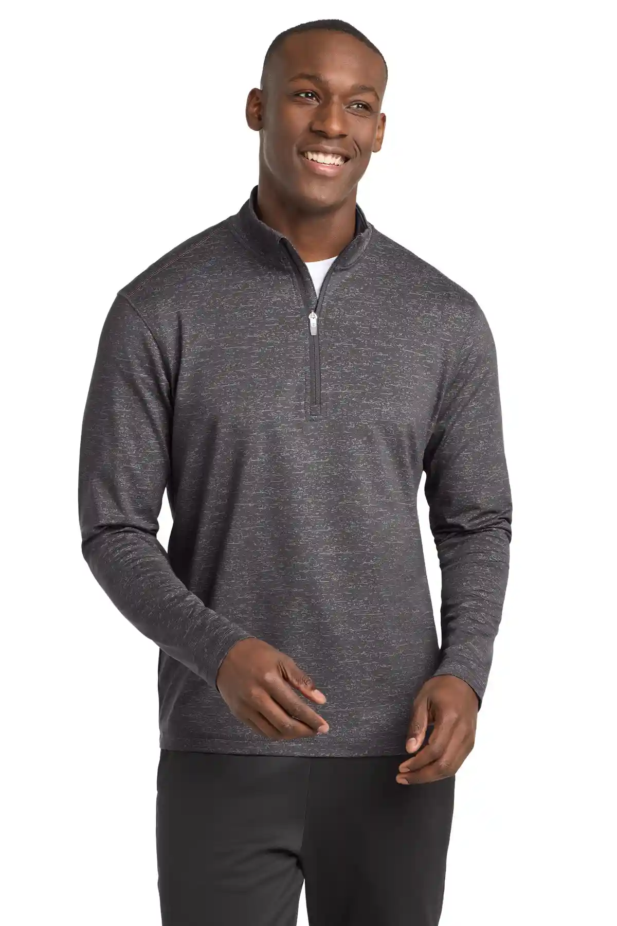 Subtle in daylight yet highly visible at night, this reflective heather pullover combines allover reflective print with moisture-wicking performance. Soft-brushed backing ensures comfort, while 10% spandex provides unrestricted stretch for movement. Ideal for early morning workouts, evening runs, or layered training, it balances visibility, flexibility, and durability.