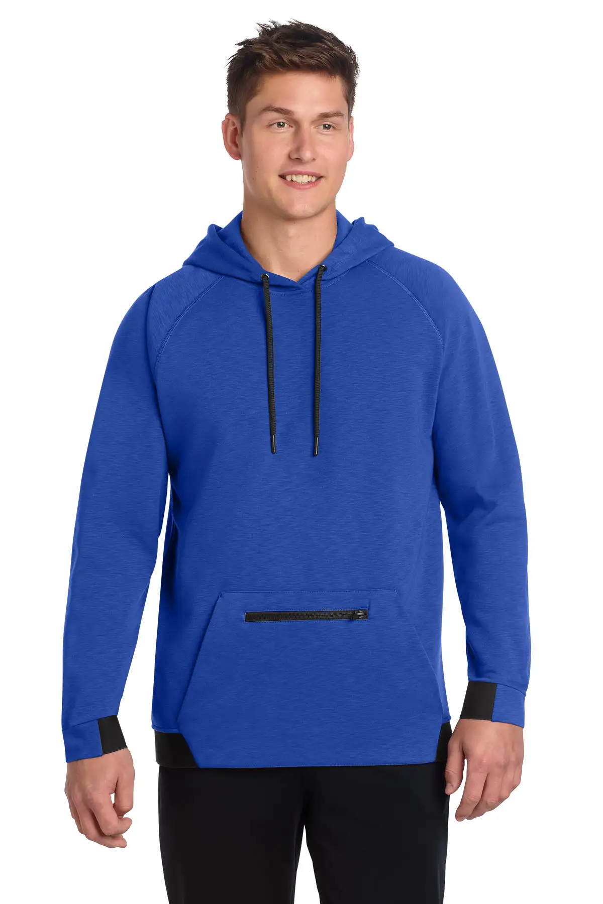 Achieve peak performance in this elevated hooded pullover featuring a soft, natural hand and slub-textured fleece. PosiCharge technology locks in colors and logos for long-lasting vibrancy. Three-panel hood ensures a snug, stylish fit while raglan sleeves with coverstitching enhance mobility. Front pouch pocket with zippered mesh provides secure storage for essentials. Half-elastic, half self-fabric cuffs and hem deliver comfort during movement, making this hoodie ideal for training, casual wear, or layering.