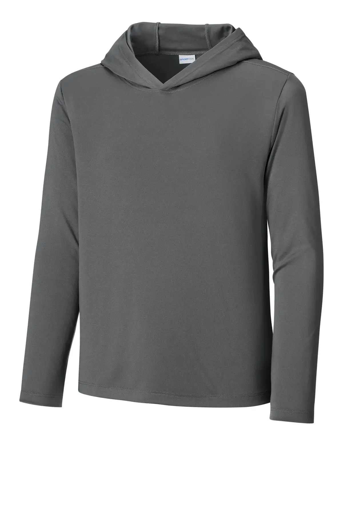 This long sleeve hoodie combines high-performance moisture-wicking with UPF 50 protection for youth athletes. Made from 4-ounce, 100% polyester interlock with PosiCharge technology, it offers lightweight warmth, comfort, and color retention. Ideal for outdoor practices, training sessions, or casual wear.