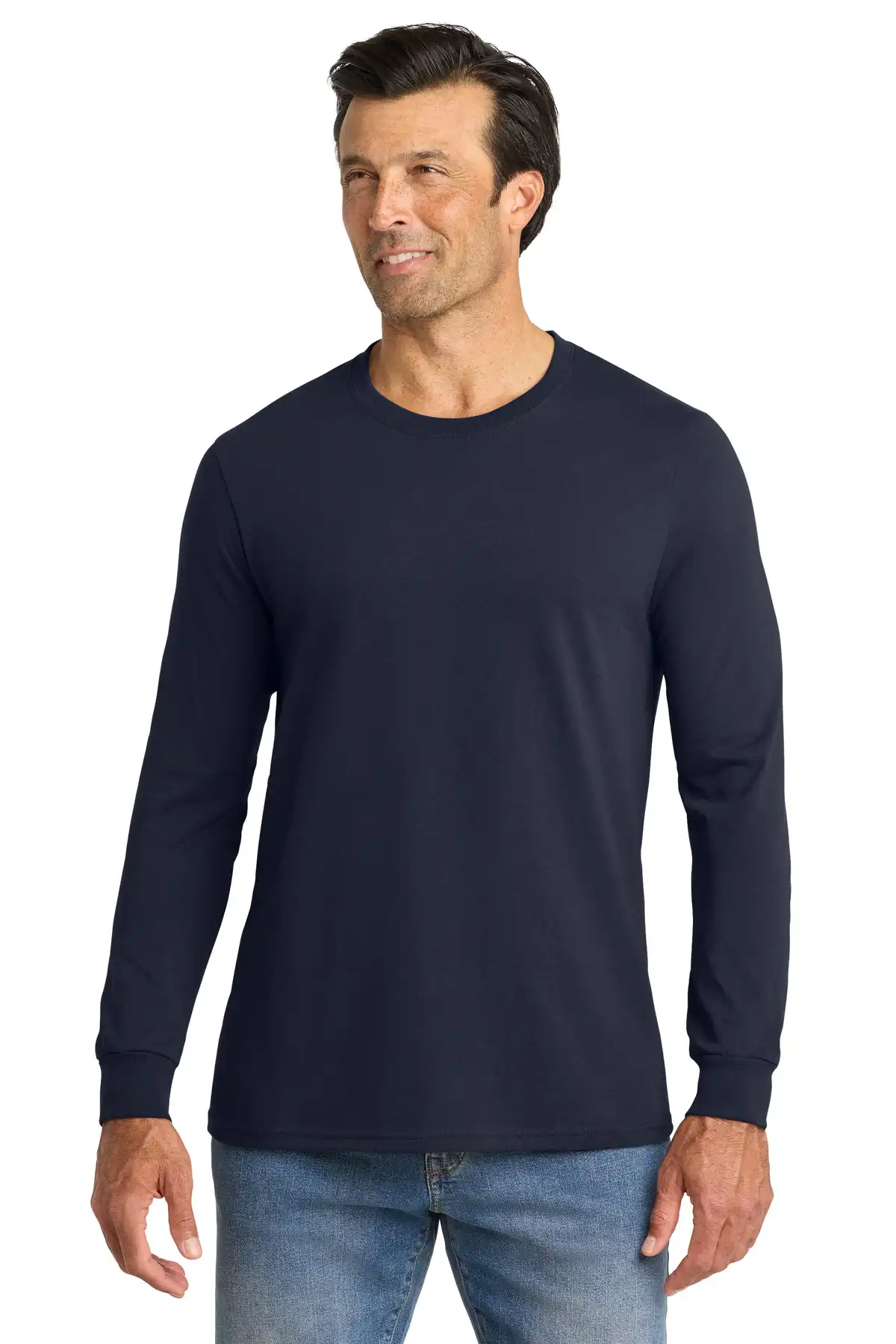 This long sleeve version of the All-American Tee delivers warmth and structure while retaining durability and classic styling. Crafted from 100% cotton or cotton/poly blends depending on color. Rib knit cuffs provide secure fit at wrists. Shoulder-to-shoulder taping and set-in sleeves maintain shape. Tear-away label ensures comfort. Heirloom-quality construction built for longevity and versatility in all conditions.