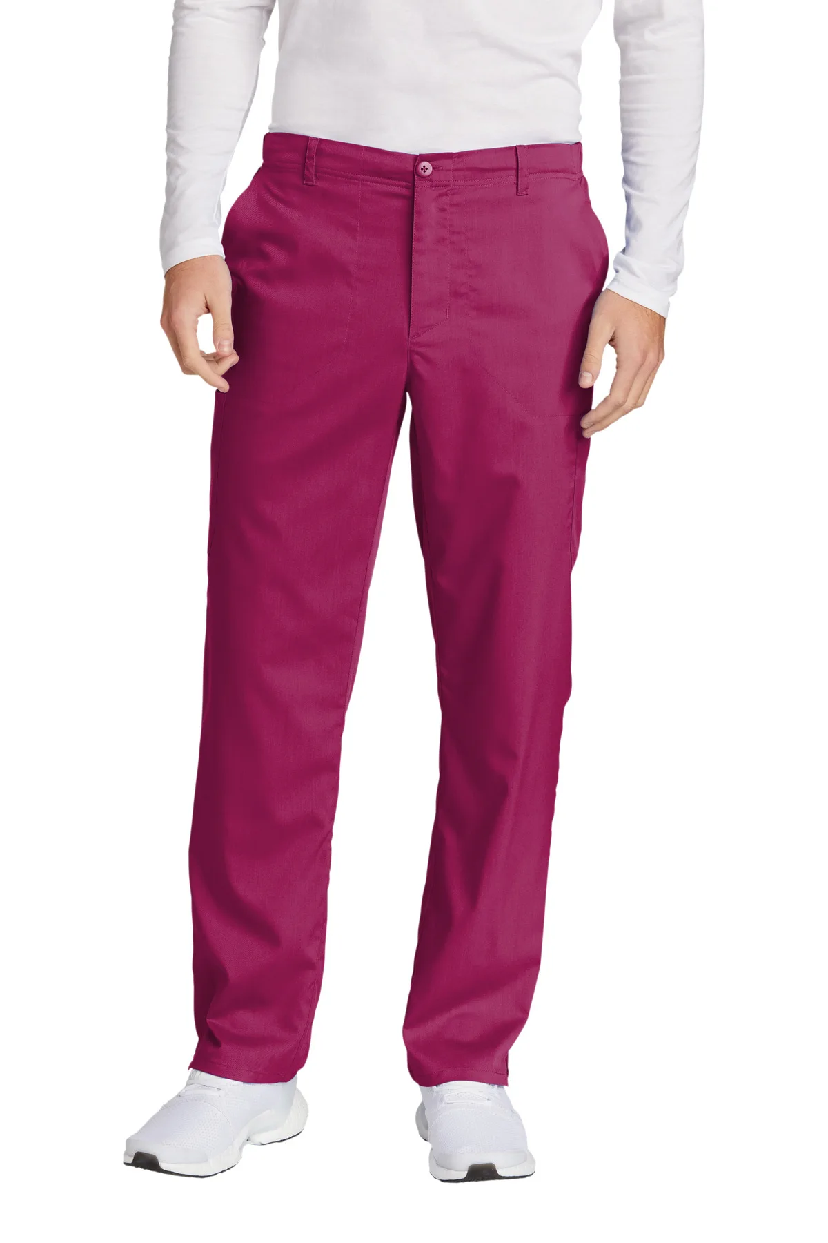 This cargo pant is engineered for professionals who require structure, flexibility, and organized storage in demanding work environments. The 78/20/2 poly/rayon/spandex blend delivers advanced stretch with shape retention, allowing full mobility without fabric fatigue. Unlike basic drawstring scrub pants, this design incorporates a flat-front waistband with belt loops, giving it a more structured, tailored appearance. A full drawstring combined with elastic back ensures adjustable comfort while maintaining a clean front profile. The button closure with zipper fly enhances security and elevates the professional finish. Multiple storage zones—including front slash pockets, cargo pockets with interior compartment, and a back pocket—support daily tools and essentials. Side vents improve stride extension and airflow. The straight-leg cut and 31-inch inseam maintain a modern, streamlined silhouette.